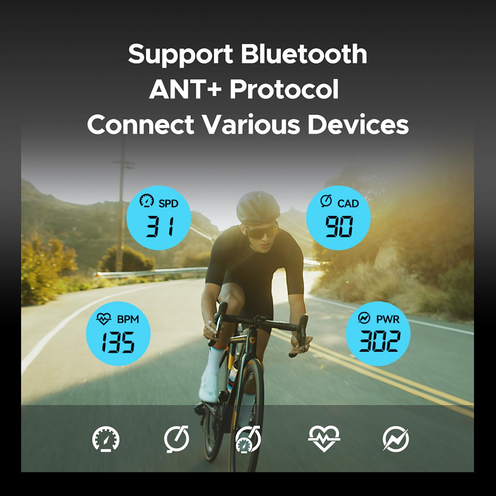 - Support Bluetooth, ANT+ Protocol,Connect Various Devices: With Bluetooth and ANT+ protocols, you can connect to your own speed sensor, cadence sensor, speed and cadence sensor, heart rate monitor, and power meter