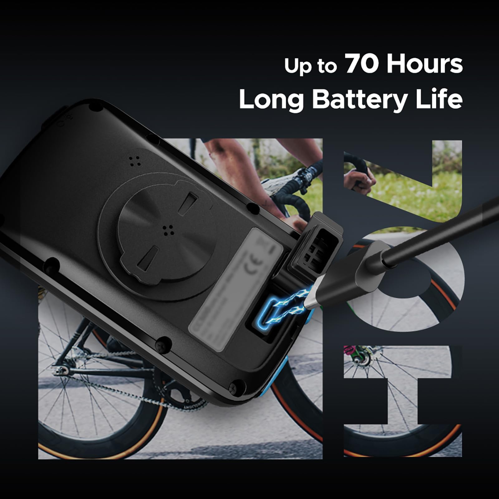 - Up to 70 Hours Long Battery Life: Get rid of low battery anxiety with up to 70 hours long battery life, enjoying enduring cycling and training sessions. The Type-C charging port makes charging even easier. *The battery life comes from the GEOID lab and is tested when the product doesn't connect any sensors and turns off backlight