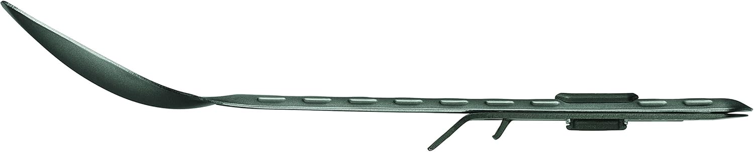 Tools include: Serrated package opener, can opener, bottle opener, pry bar, small and large flat head driver. Aluminum construction. Color: Gray