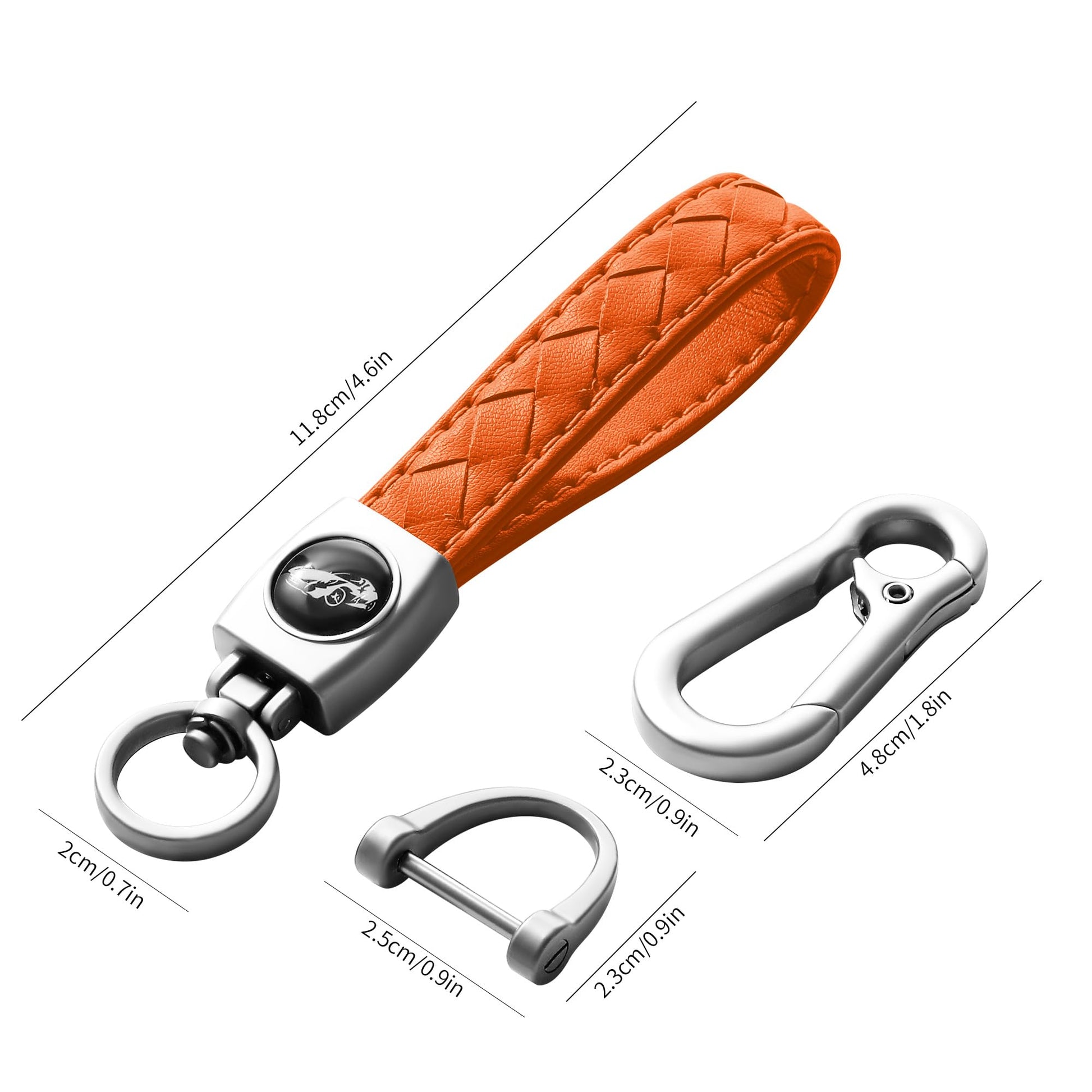 Gkeygo Carabiner Keychain, Universal Heavy Duty Woven Handmade Leather Key Chain, Car Fob Key Keychains with 360 Degree Rotatable Snap Swivel and Anti-Lost D-Ring for Men and Women, Silver - Orange