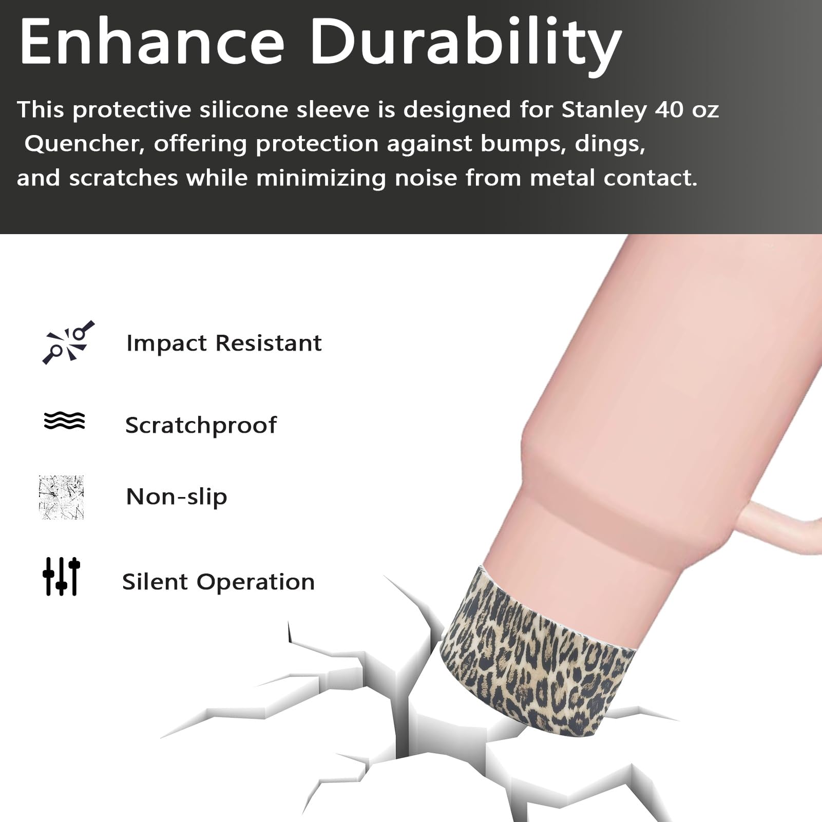 Gliquran Leopard Protective Silicone Boot for Stanley Quencher H2.0 40 30 20 oz & IceFlow Flip 30 20 oz,Cheetah Water Bottle Boots Accessories