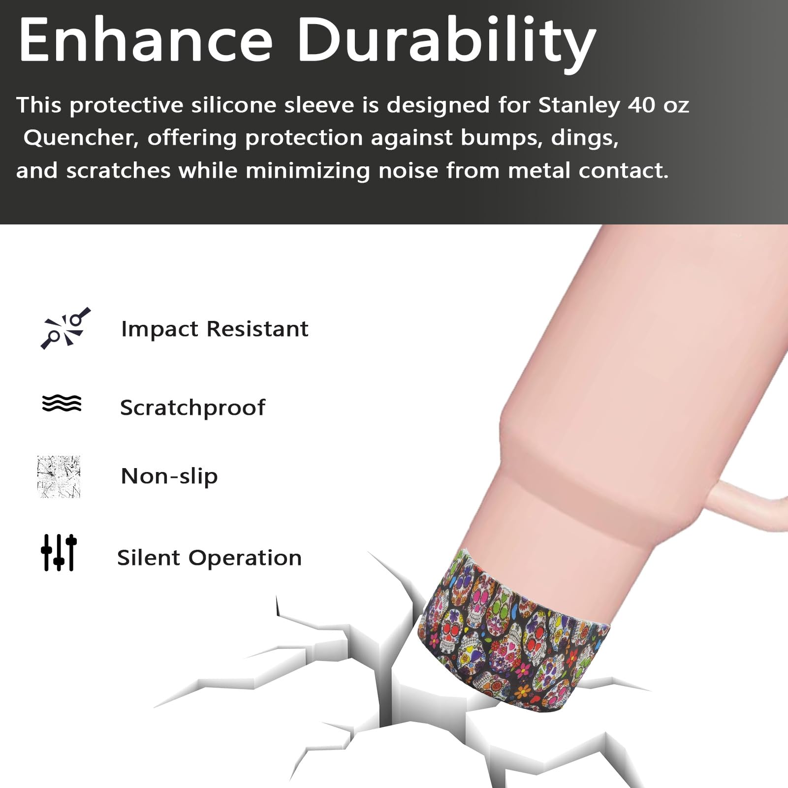 Details: Transform your hydration habits with the colorful Skull Protective Silicone Boots, fitting for Stanley IceFlow 20/30 oz Tumbler, Quencher Adventure/H2.0 20/30/40 oz, among others. Not only do these boots provide substantial protection against everyday
