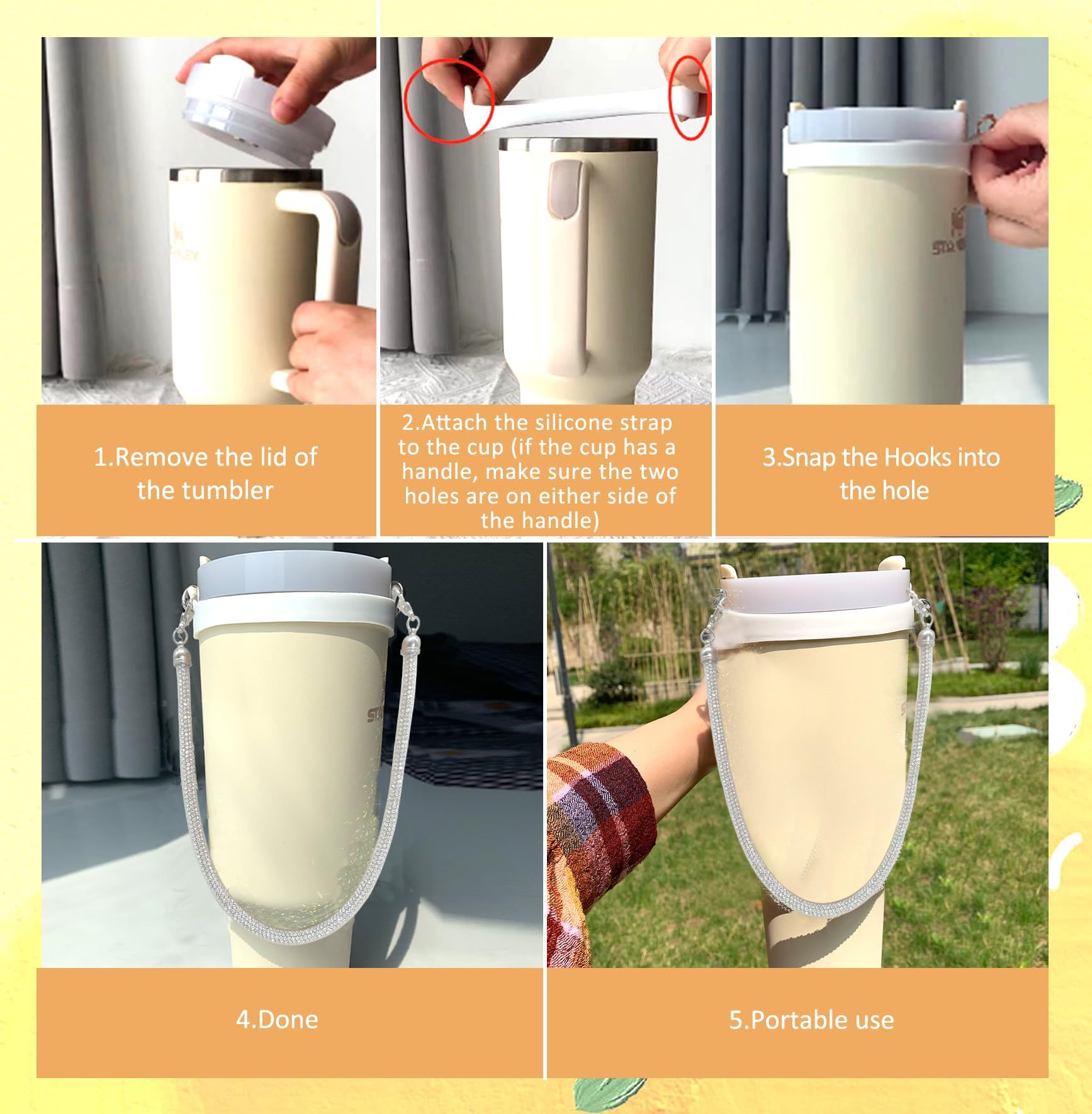 - Twinkling and Sturdy Stanley Accessories: The bling bottle handle with silicone strap design not only ensures functionality but also adds a sparkly touch of cuteness for you tumblers, that brings a unique personality to the bottles