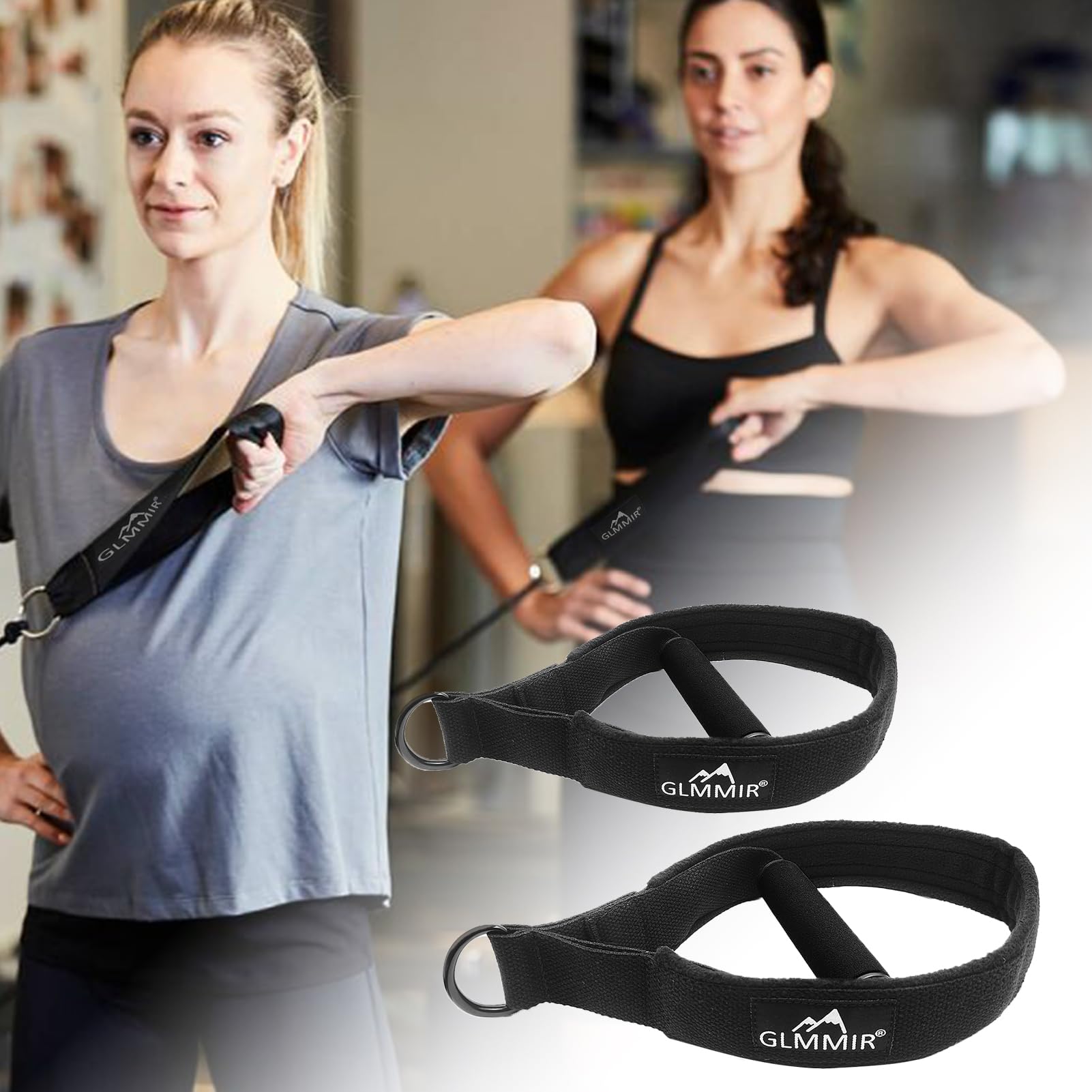 GLMMIR Pilates Double Loop Straps for Pilates Reformer, Fitness Metal D Ring Straps Handle, Pilate Accessories Yoga Wristbands Exercise Straps for Gym Home Workout 2PCS - Black with Handle