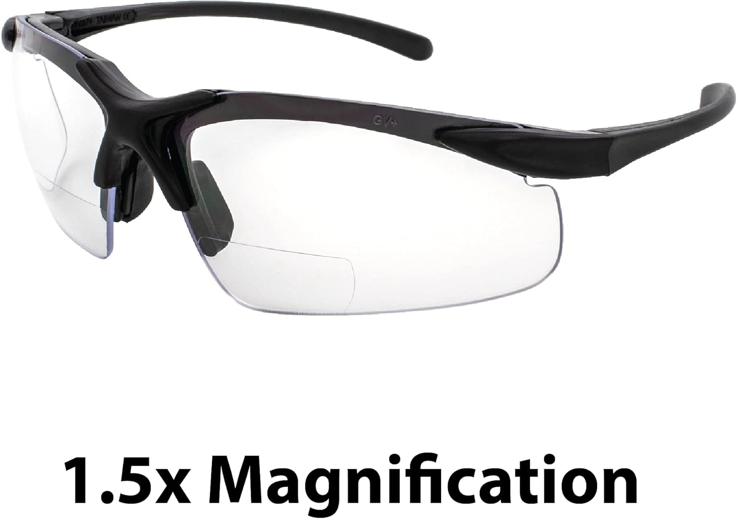The Global Vision Eyewear Apex Bifocal lenses and frames are designed to provide you with a great fit to keep the wind out, comfort for a long ride and protection from flying objects. Plus these meet standards set by the American National Standards Institute (ANSI) for safety glasses. The product features are meets ANSI Z87.1-2010 standards for use in industrial applications, shatterproof polycarbonate lenses, UV400 filter for maximum UV protection, magnifications of +1.5 and rubber nose pads.