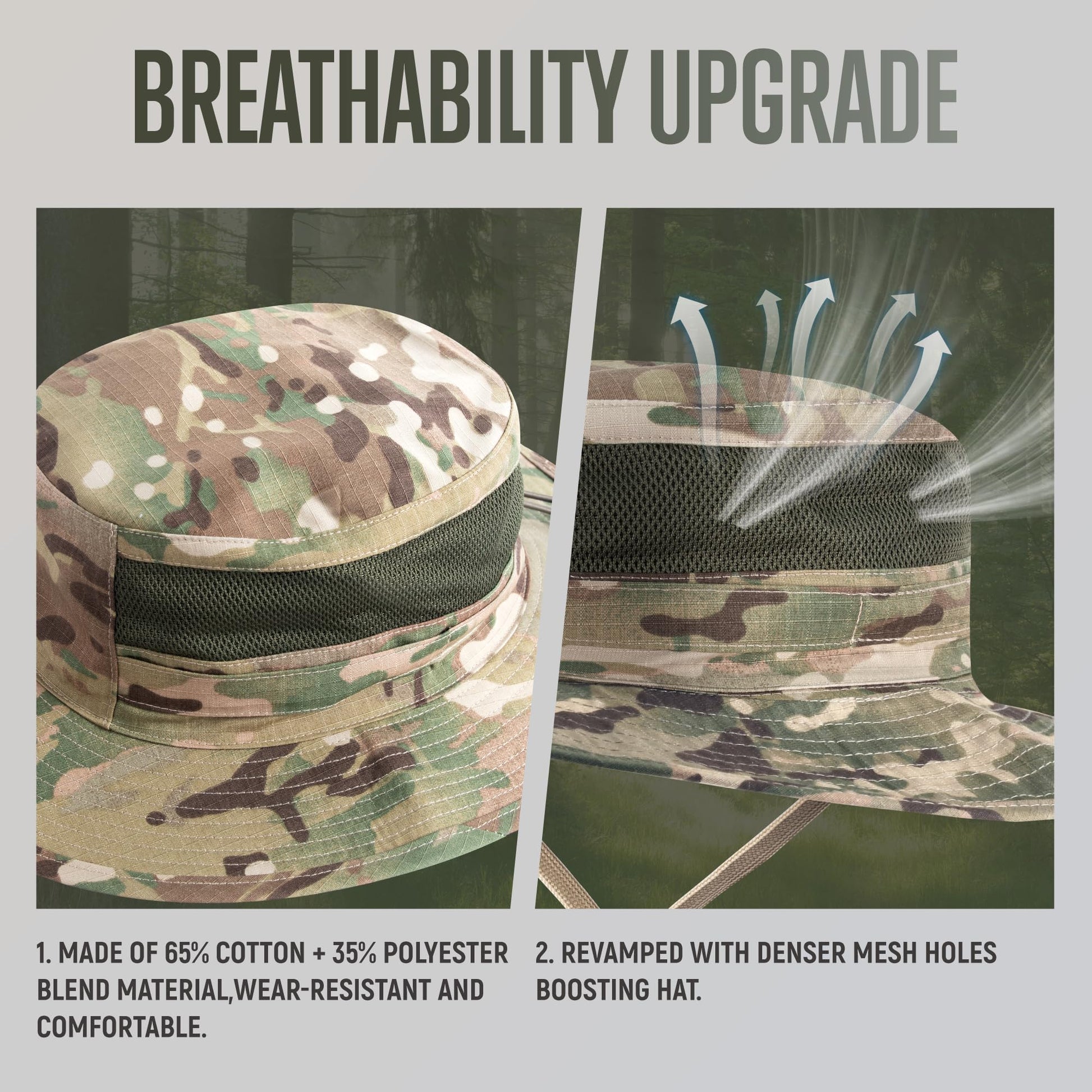 - 【3】Upgraded Boonie Hat now features breathable mesh hole for cooler summer wear and an added drawstring for a more versatile fit, catering to a wider range of preferences.