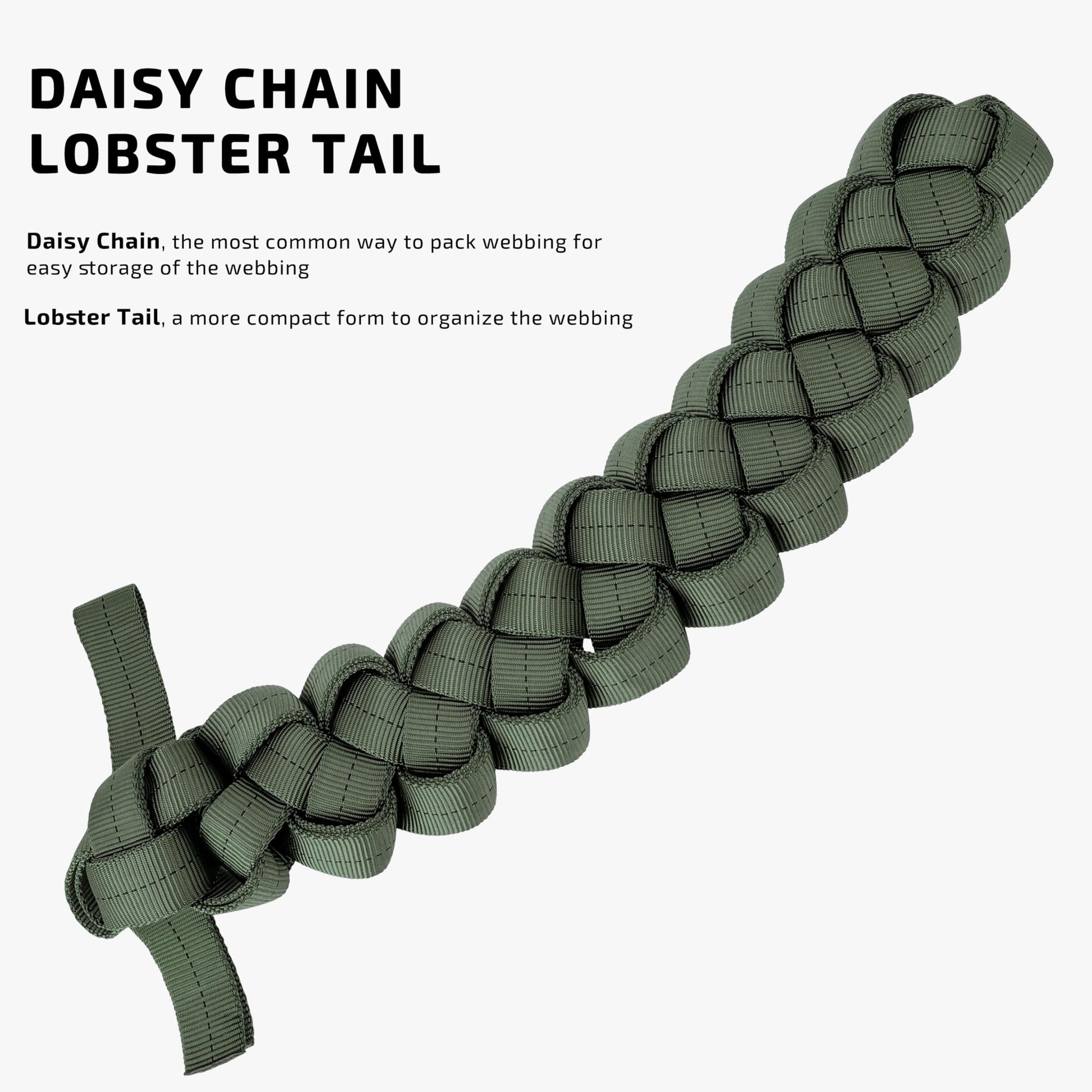 - VERSATILE WEBBING! Carry a roll of 1in webbing when going out, and you could easily daisy-chain it to be compact, convenient for carry-on or storage. Available in various camo colors, MIL-W-5625 webbing is widely found in heavy-duty applications, including climbing, parachute, military, and outdoor tactical uses. The webbing also widely helps fulfill various works in daily life, reinforcing tarp corner/rucksack/duffel bag, dog tie out the leash, lashing straps, and more.