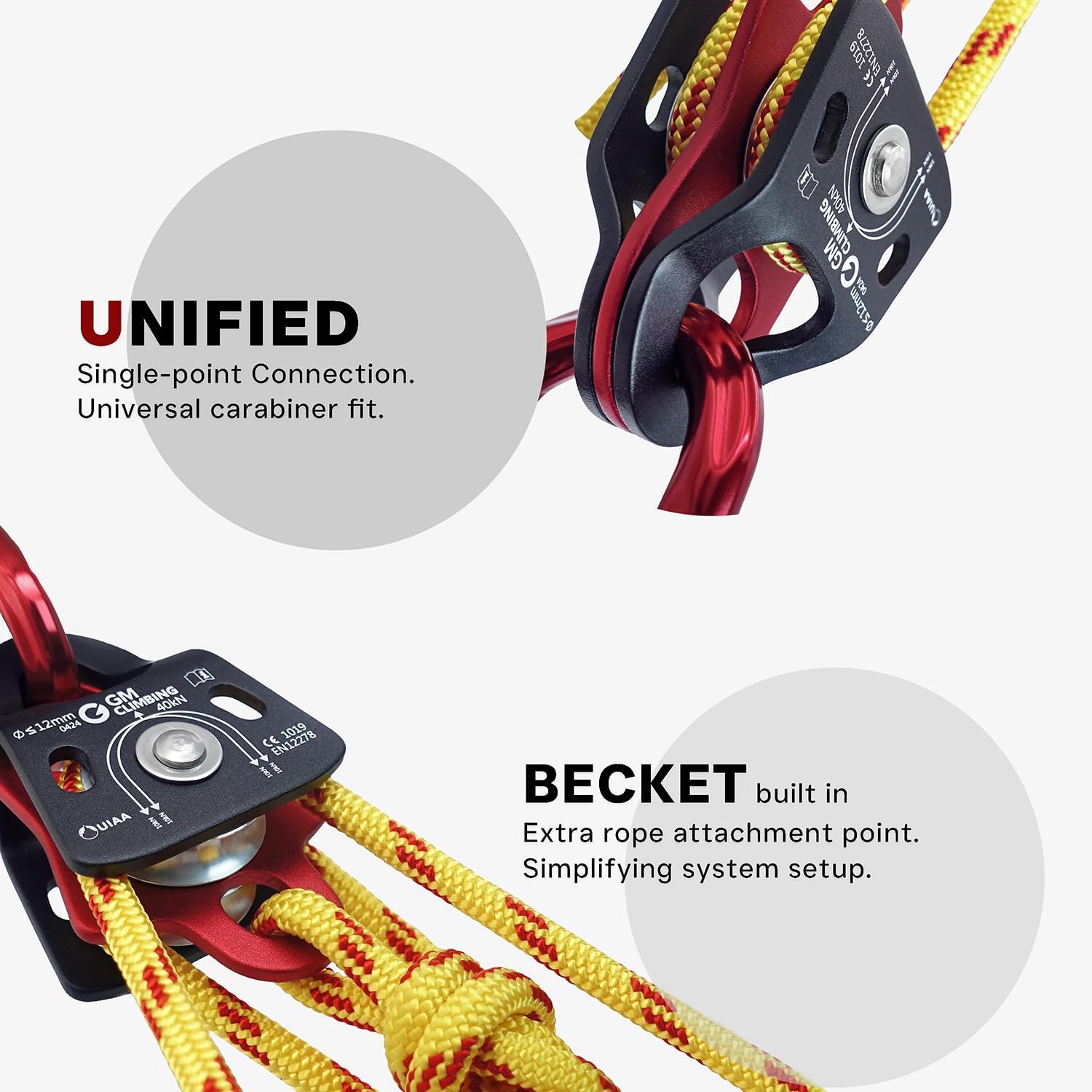 GM CLIMBING 40kN Micro Double Pulley Prusik Minding Ball Bearing UIAA CE for Progress Capture System Rigging Hauling Rescue Arborist Tree Climbing