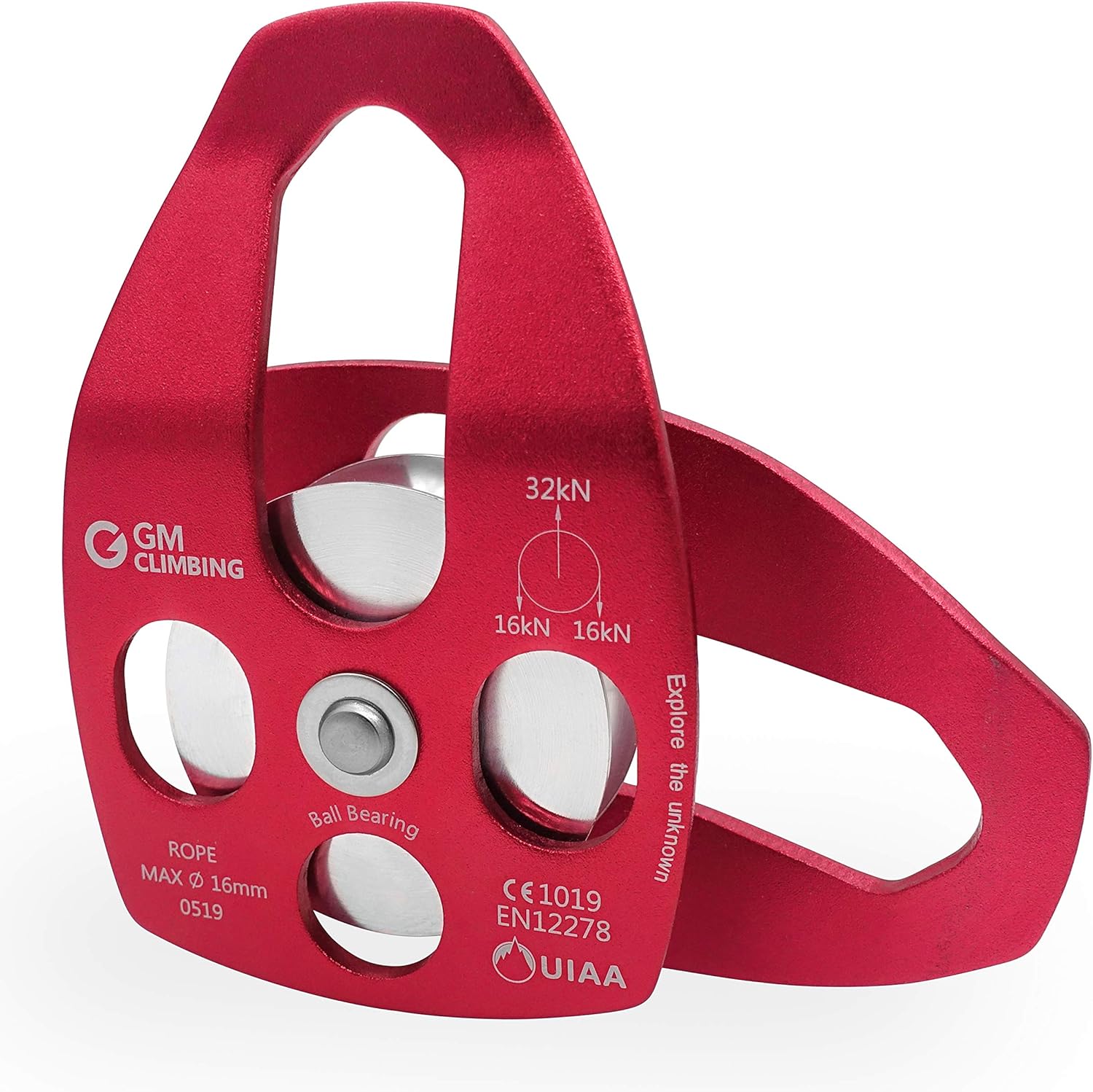 GM CLIMBING Large Rescue Pulley 32kN Single Sheave with Swing Plate CE UIAA Certified