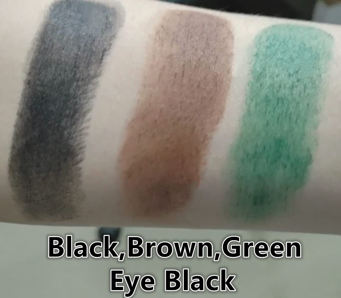 - 【3 Colors Eye Black for Sports】 Black,brown,green color goes on smoothly, long-lasting eye black paint! A great eye black stick for sports.Larger capacity than regular eye black, unique design applying if you press to hard will not break, and dry fast don't smudge anywhere,great for game face paint.