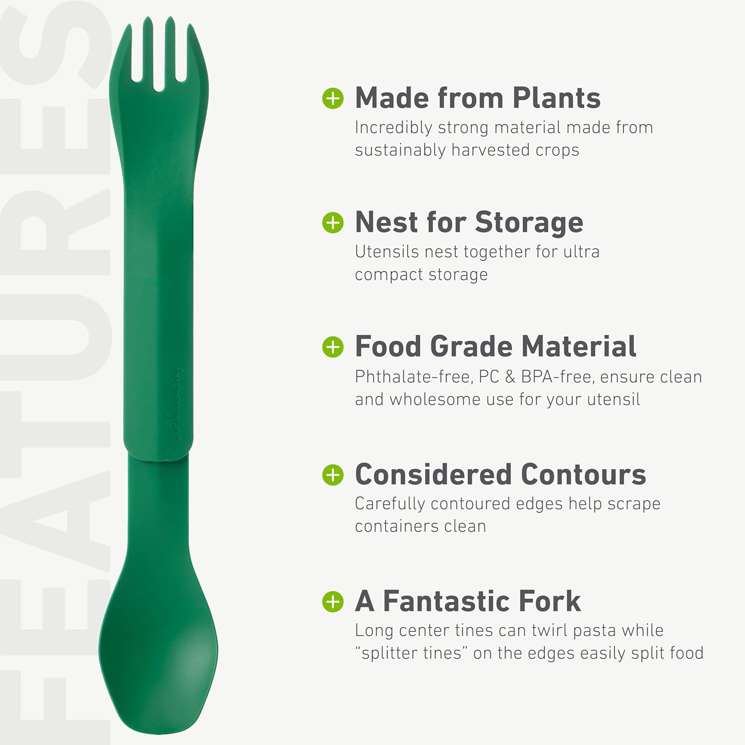 - Evolved Design - Connect spoon and fork end-to-end to reach dehydrated food bags or extra deep containers, plus utensils nest together for ultra compact storage