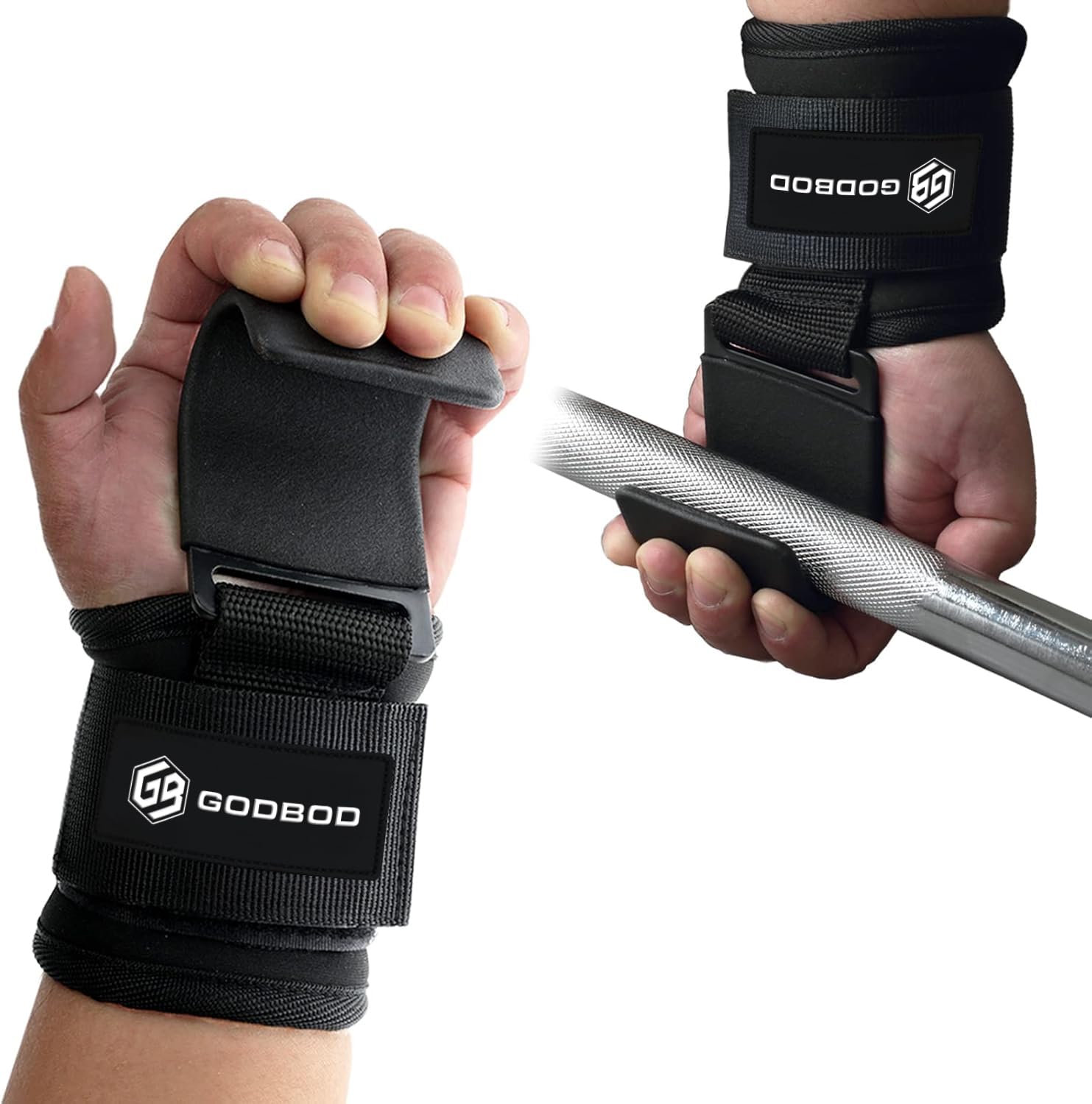 GODBOD Weight Lifting Hooks for Men and Women – Heavy-Duty Wrist Support with Non-Slip Steel Hooks, Adjustable Straps for Deadlifts, Pull-Ups, Rows, and Strength Training – Ideal Gym Accessory for Powerlifting and Bodybuilding