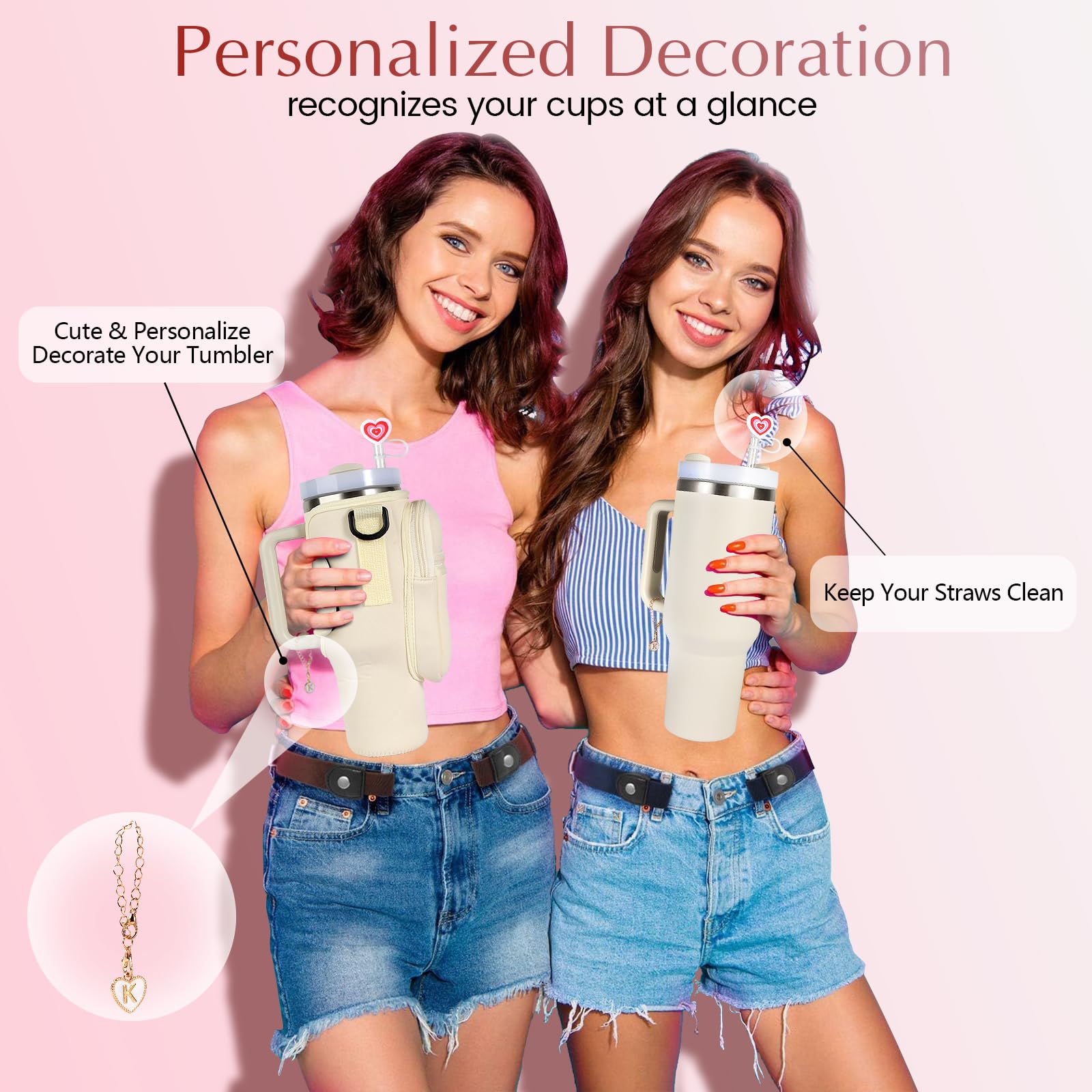 - 【What's in the Gift Box】 The stanley cup accessories gift set includes 1 PC 30oz Water Bottle Carrier Bag,1 PC Cute Straw Covers for 10mm Straws,1PC Letter Charm.This is a great gift choice for mother, wife, kids, teachers, friends as birthday, Thanksgiving, Christmas, Valentine's Day gifts! Everyone loves the exquisite and practical stanley cup accessories gift set!