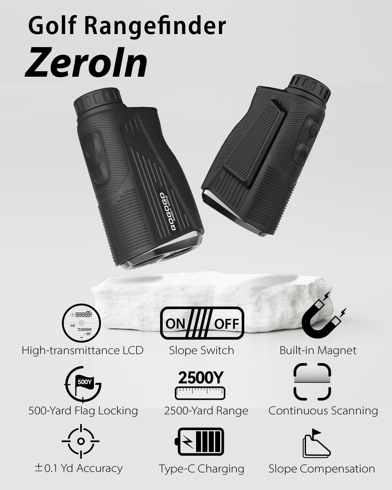- Slope Compensation with On/Off Function: Whether you're hitting uphill or downhill, the ZeroIn range finder intelligently adjusts for slope changes, providing the true, effective distance. With a simple slide of the switch, you can easily enable or disable slope compensation, ensuring precise measurements while staying tournament-legal