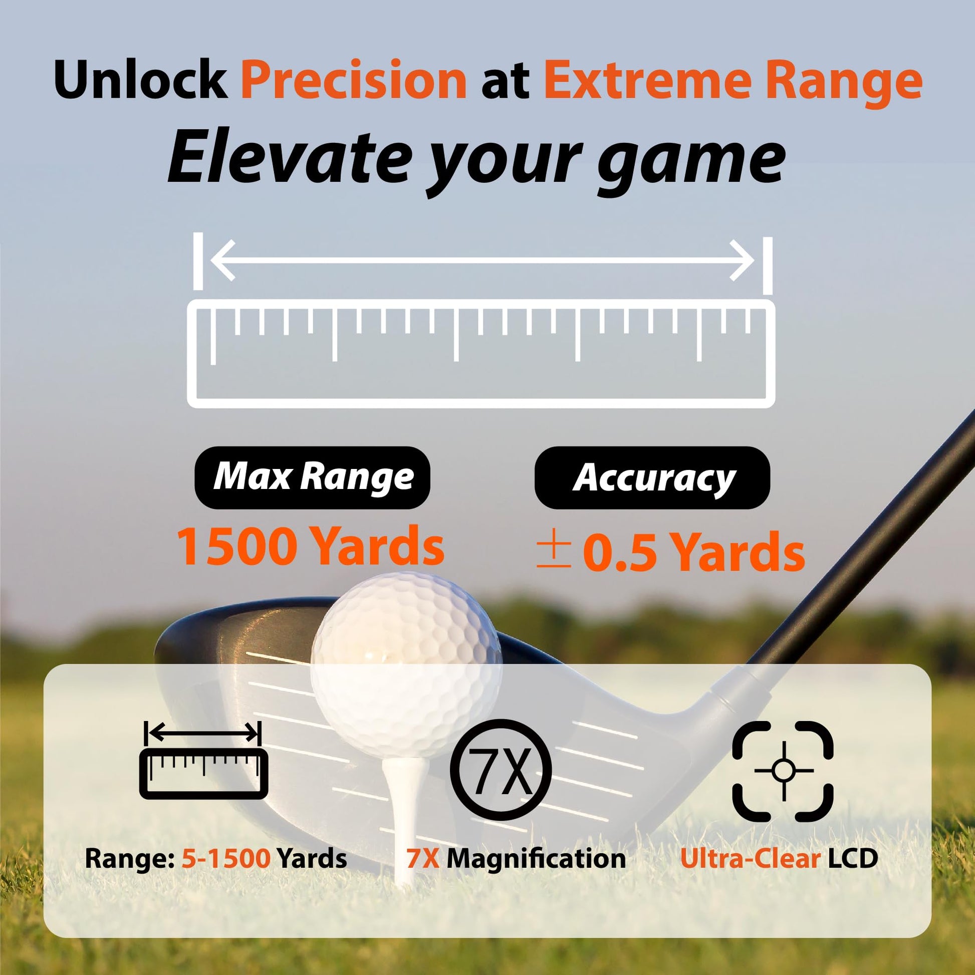 - EXTENDED MEASURE RANGE & ENHANCED VISION: Boasting a measurement range of up to 1500 Yards with ±0.5 yard accuracy and rapid readings in 0.38 seconds, the VRP-1500 golf rangefinder with slope switch gives you the edge on long holes, while its Flag Lock technology allows for precise targeting up to 300 Yards away. With 7X magnification, and an adjustable diopter up to ± 6°, this golf rangefinder provides a clear, undistorted view of the green and plan their shots with confidence.