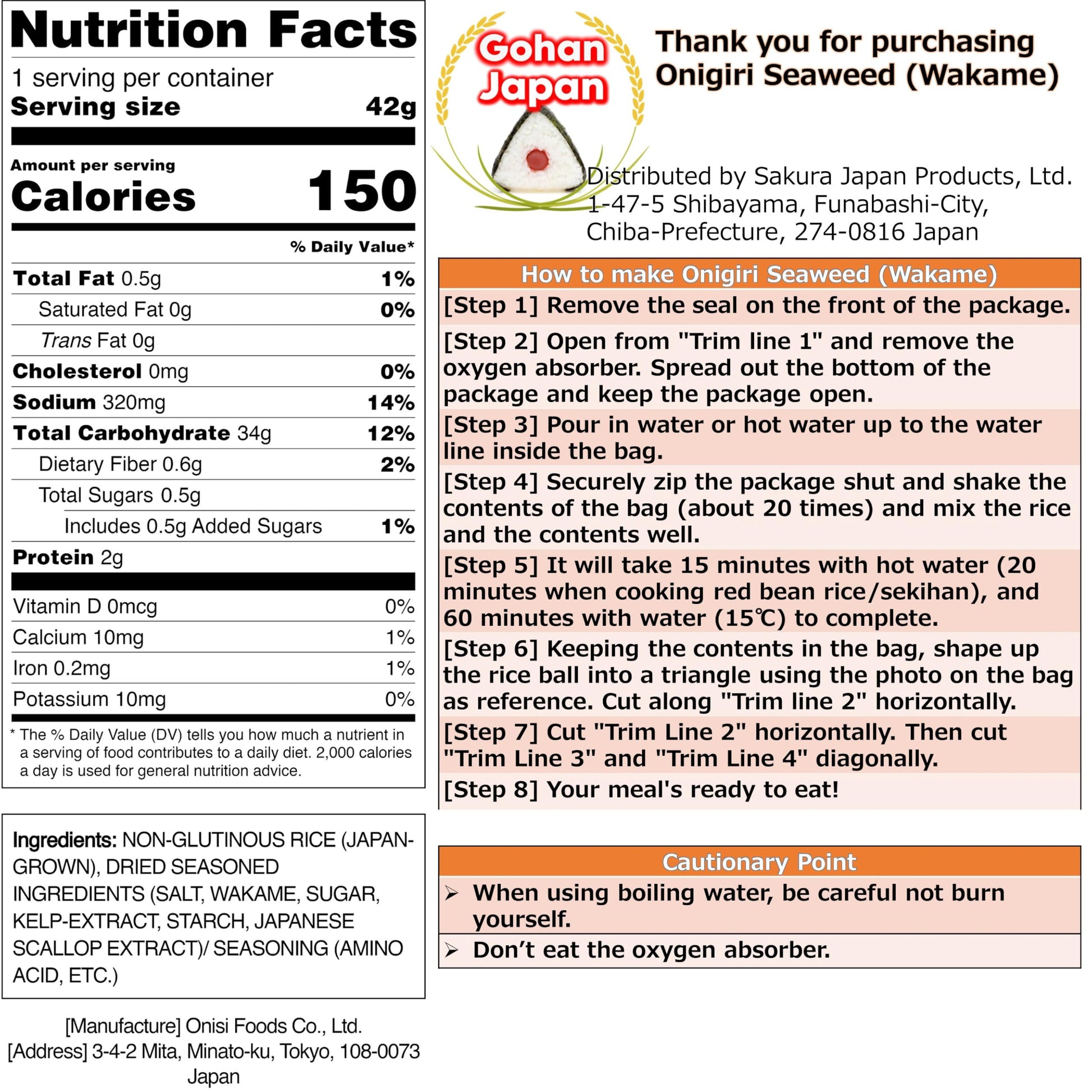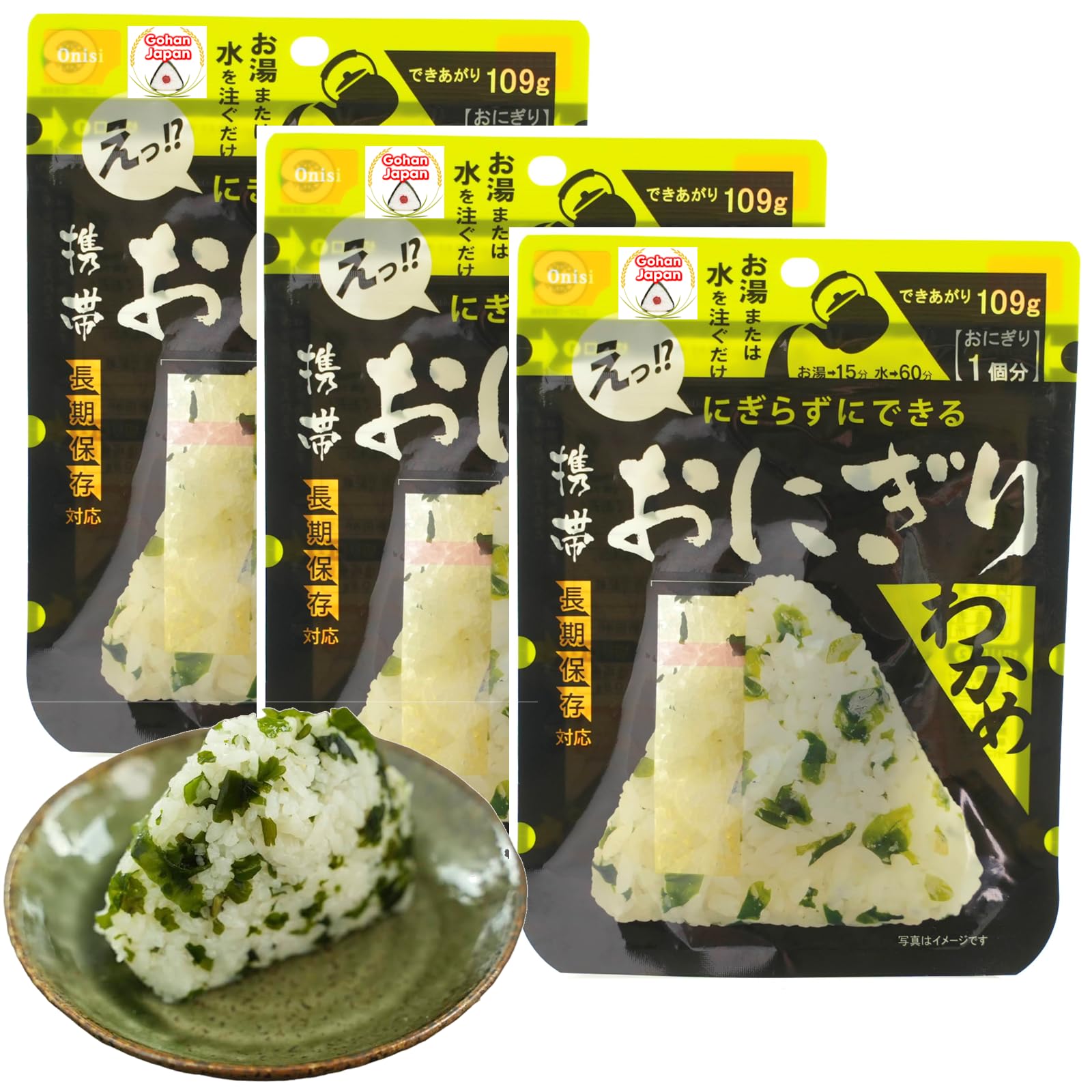 - ✅ Seaweed Wakame Onigiri Easy to Carry portable Dried Rice Ball made with 100% Japan based Alpha Rice manufactured by Onisi Foods (Japanese Food Company).