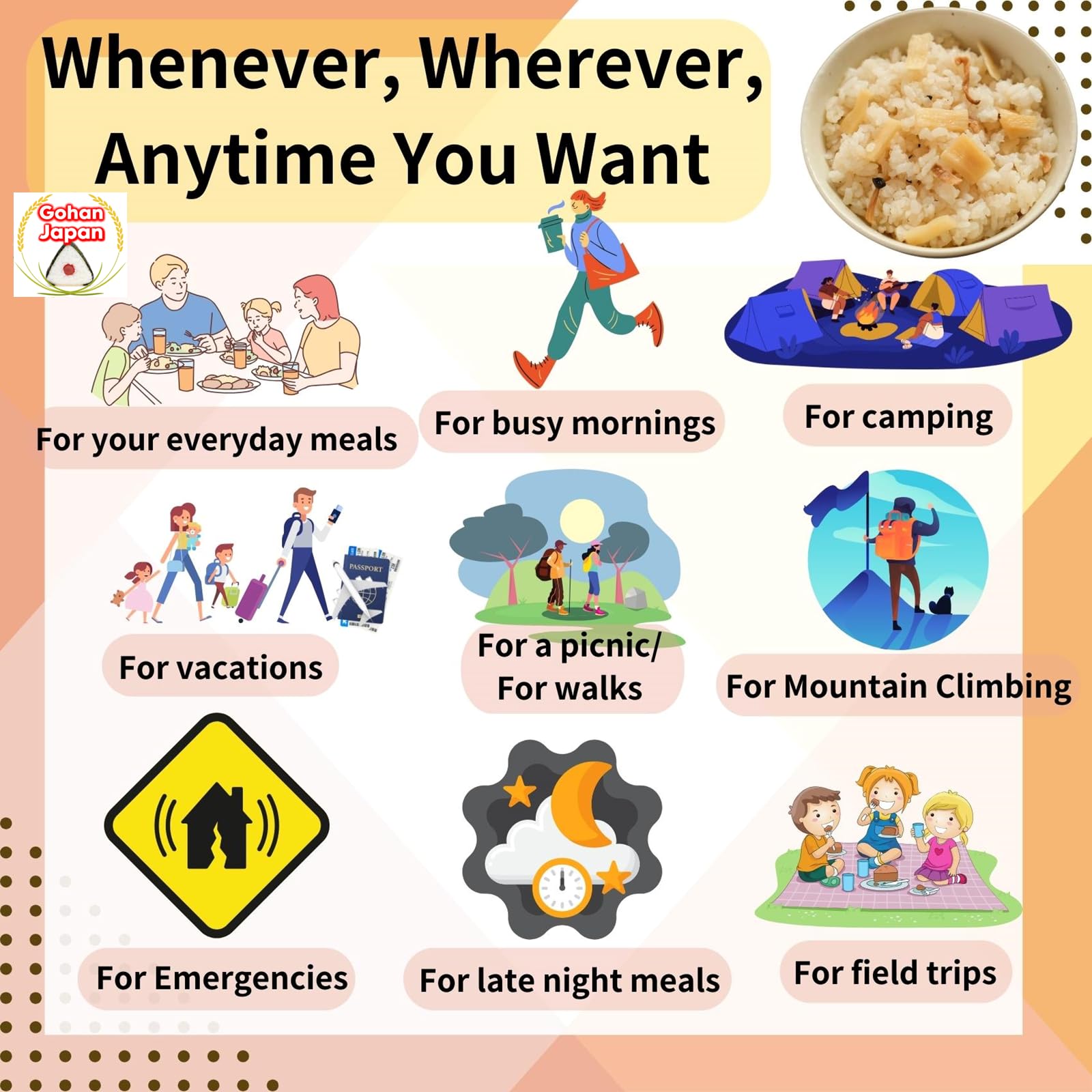 - ✅ By adding water or hot water to rice in the "alpha" state, the rice returns to a freshly cooked texture and taste for a great and healthy meal.