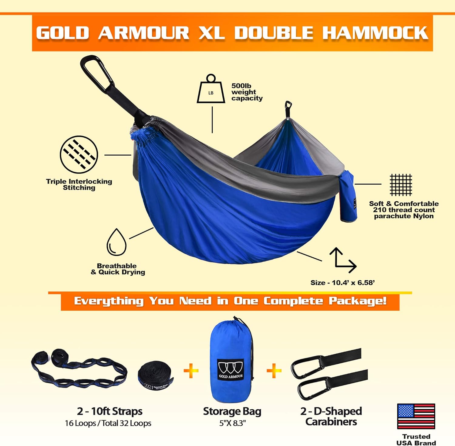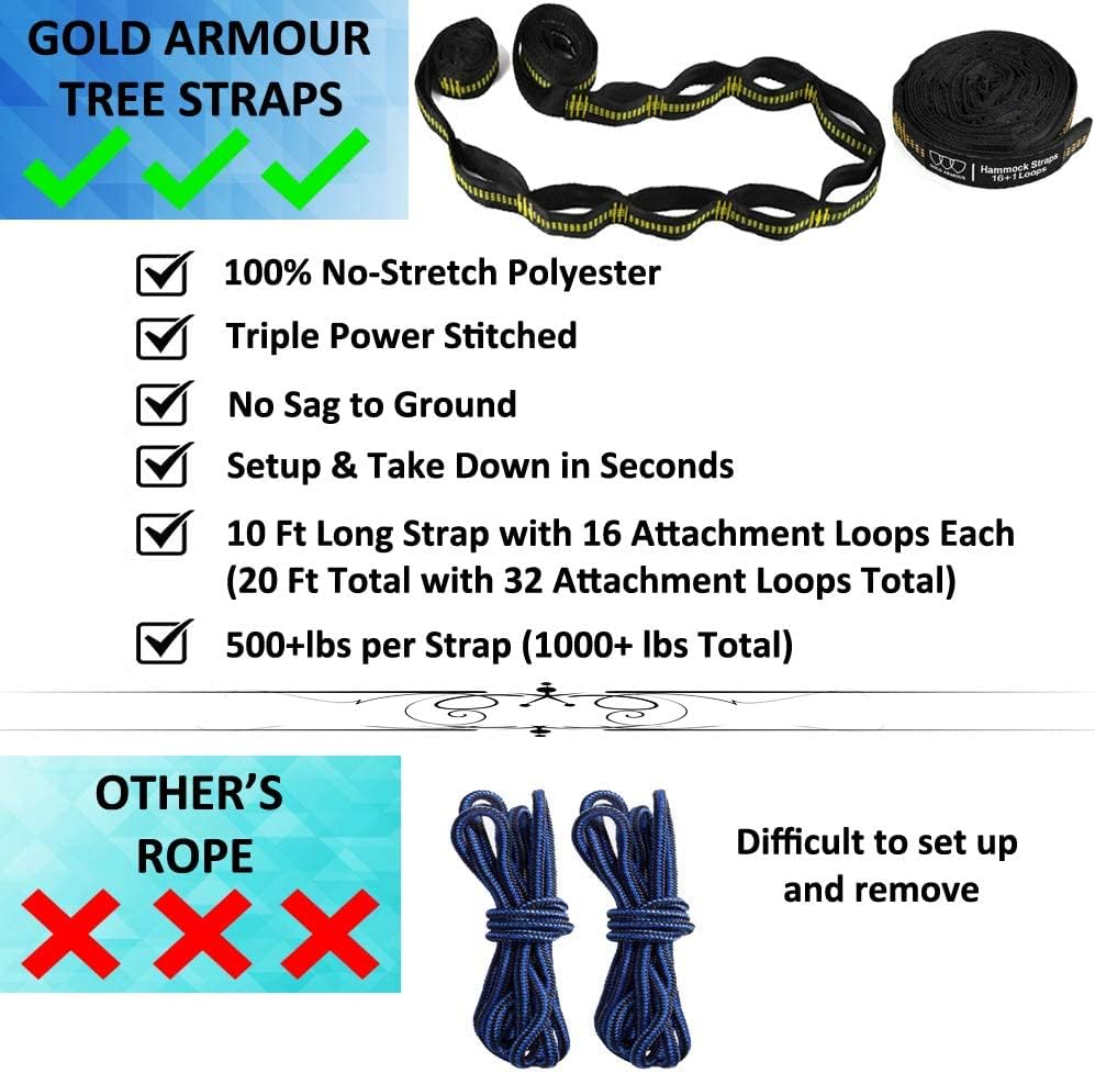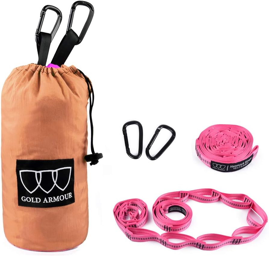 Gold Armour Camping Hammock - XL Double Hammock Portable Hammock Camping Accessories Gear for Outdoor Indoor with Tree Straps, USA Based Brand (Gray)