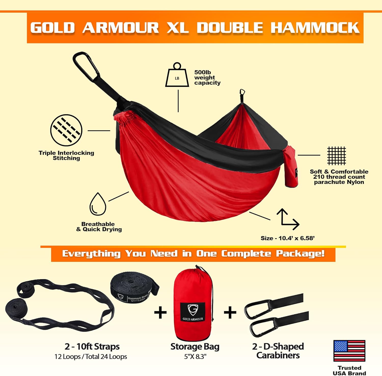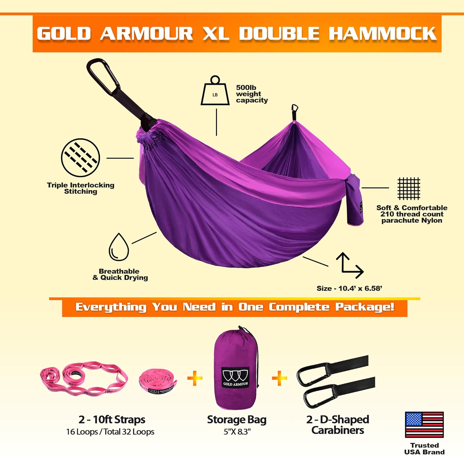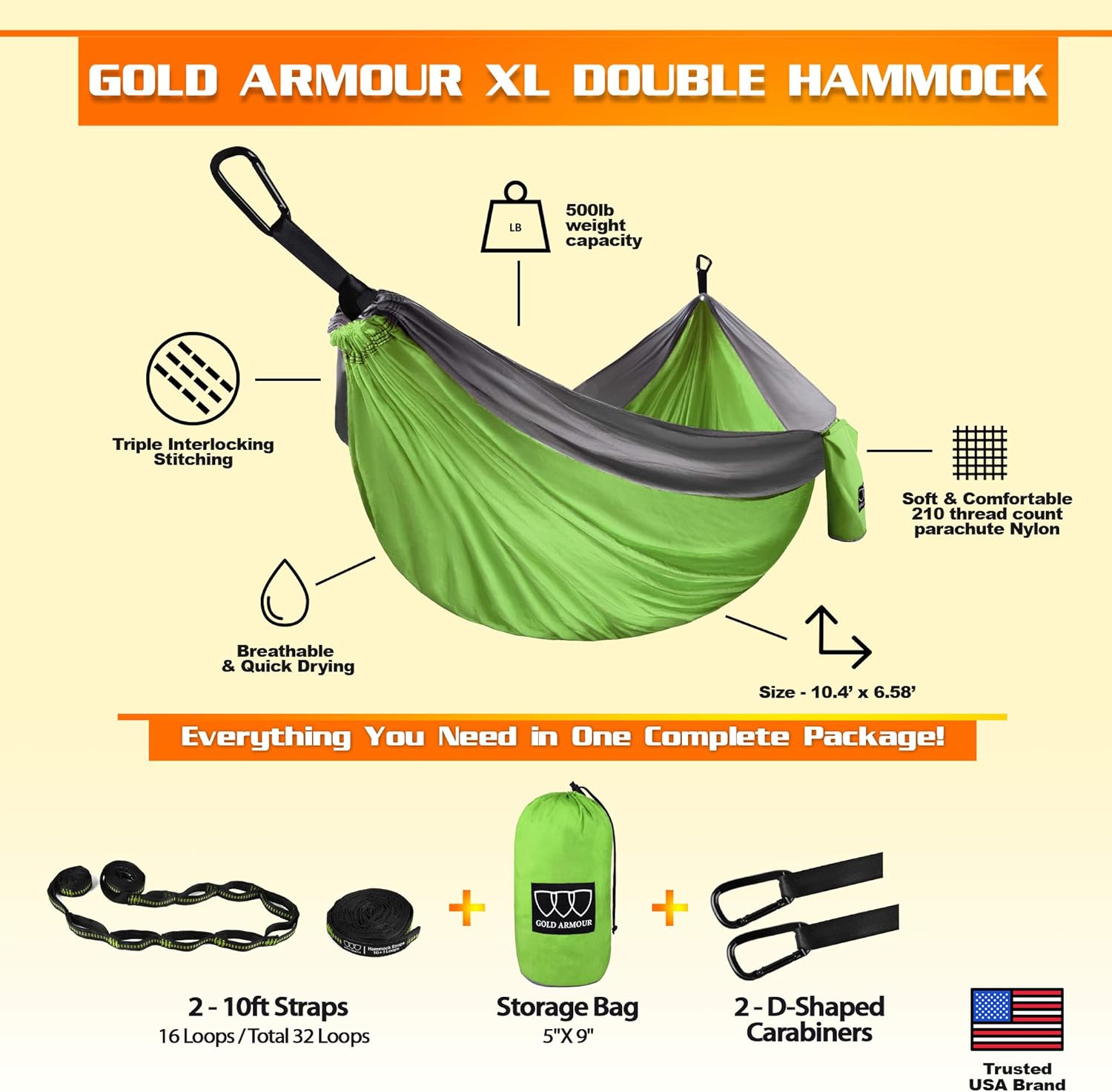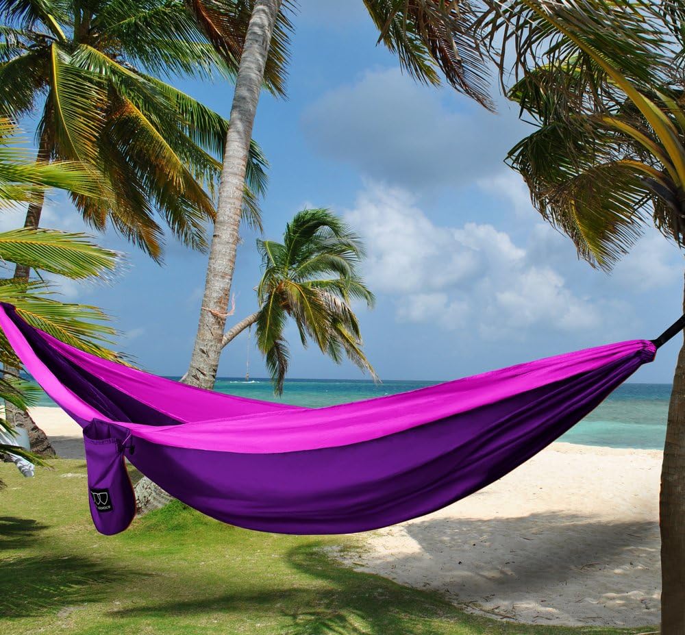 - ✔ Premium Quality - Built to last a lifetime, our durable camping hammocks are crafted with soft and strong premium parachute nylon and triple interlocking stitching, along with heavy duty carabiners and tree friendly hammock straps