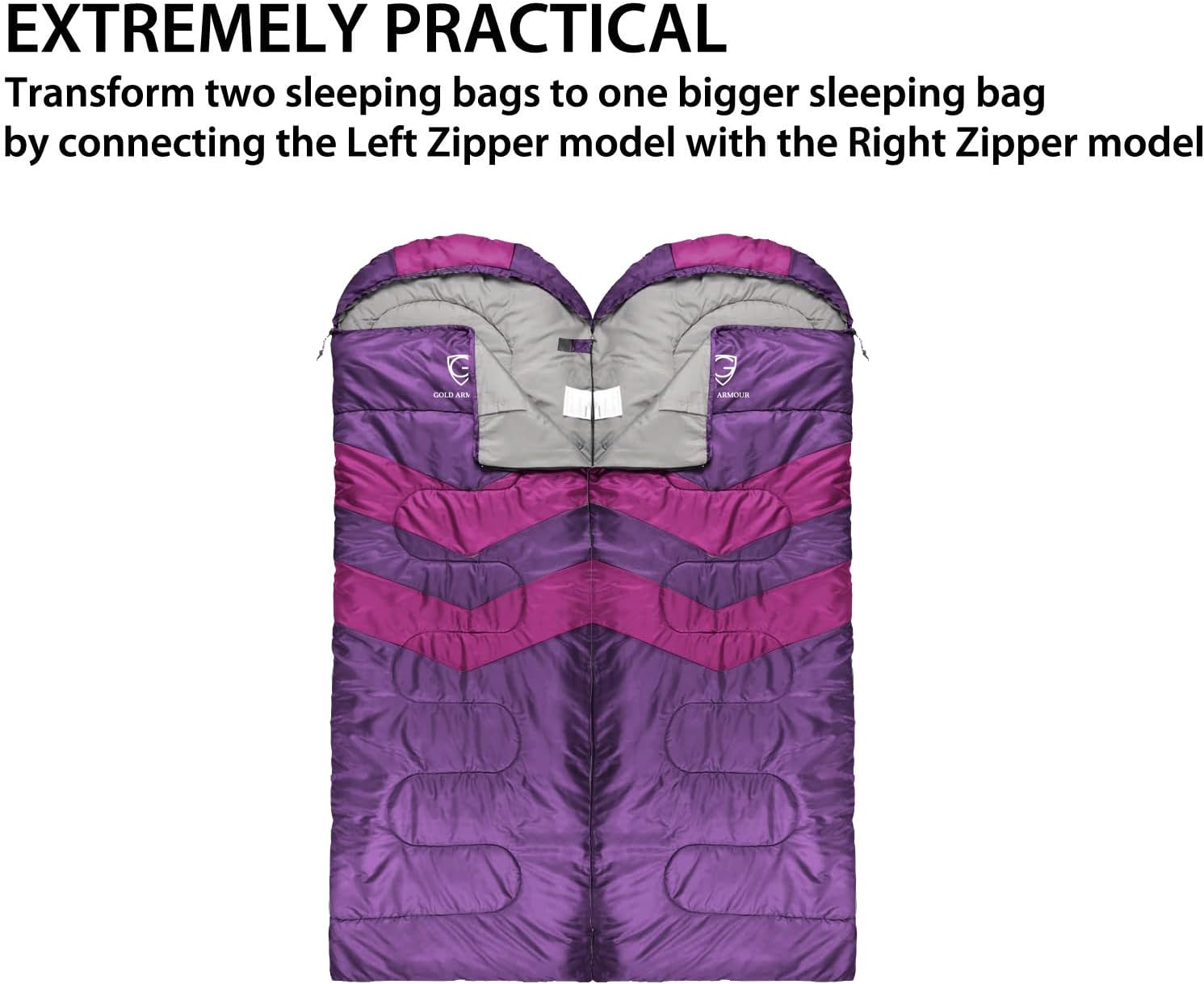 - EXTREMELY PRACTICAL - Transform 2 Sleeping Bags into 1 Bigger Sleeping Bag by connecting the Left Zipper version with the Right Zipper version. Both Left Zipper version and Right Zipper version are available, please search "gold armour sleeping bag"