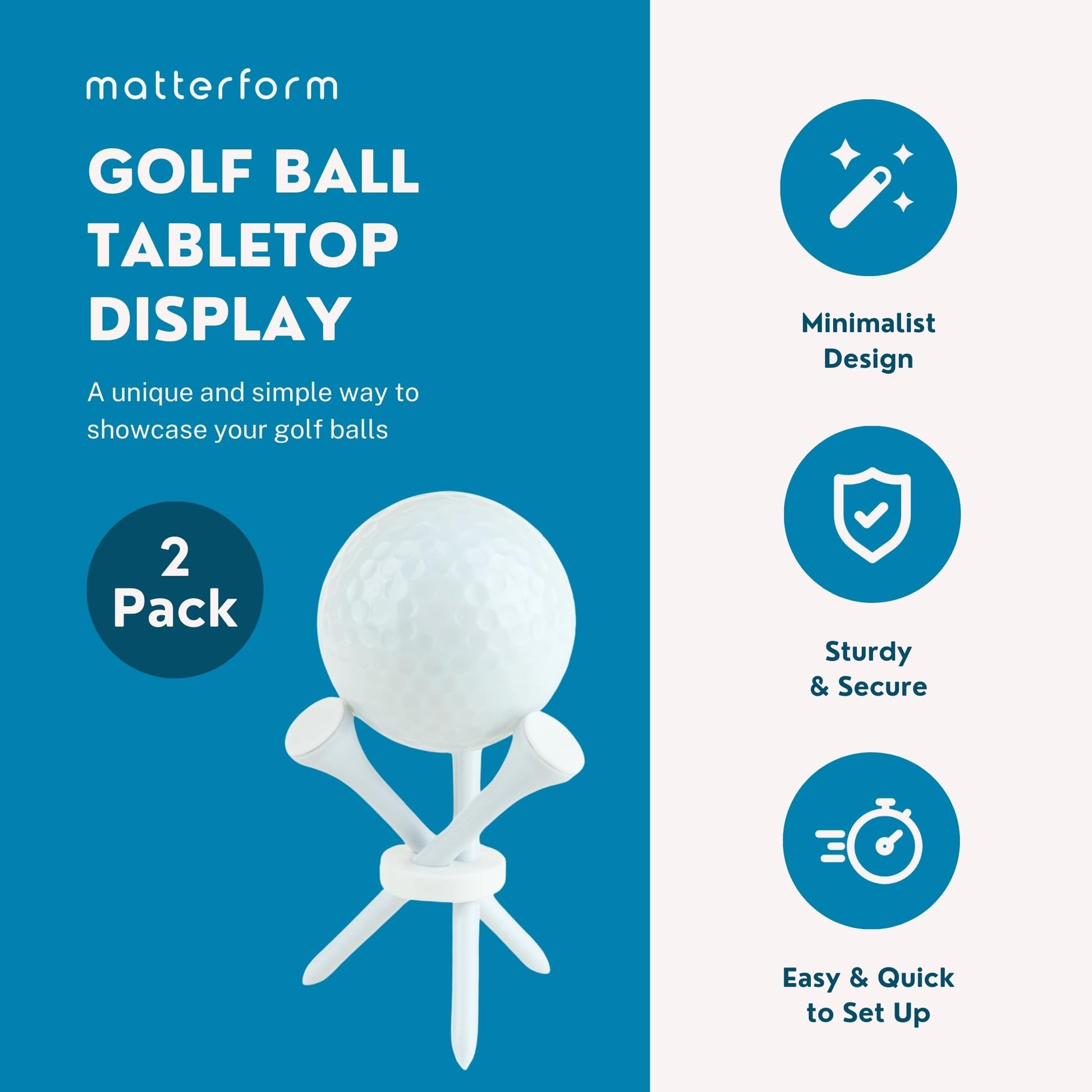 Golf Ball Tabletop Display Stand (2 Pack) | Desktop Golf Tee Holder for Single Golf Balls | Tripod 3 Tee Mount for Golf Balls | Great for Collectible Balls | Golf Decor & Storage (White)