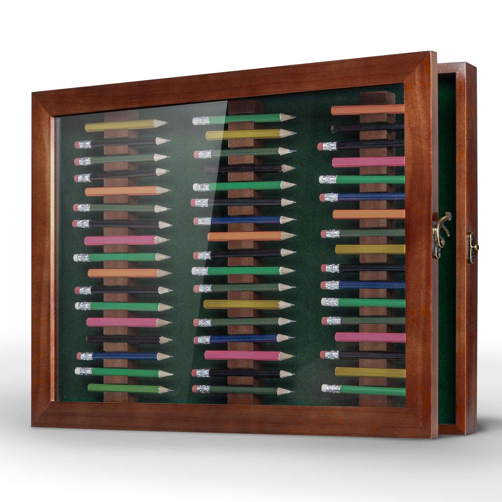 Golf Pencil Display Case Holds 51 Round or Octagonal Golf Pencils Wood Wall Mount Clear Display Case with Acrylic Dust UV Cover
