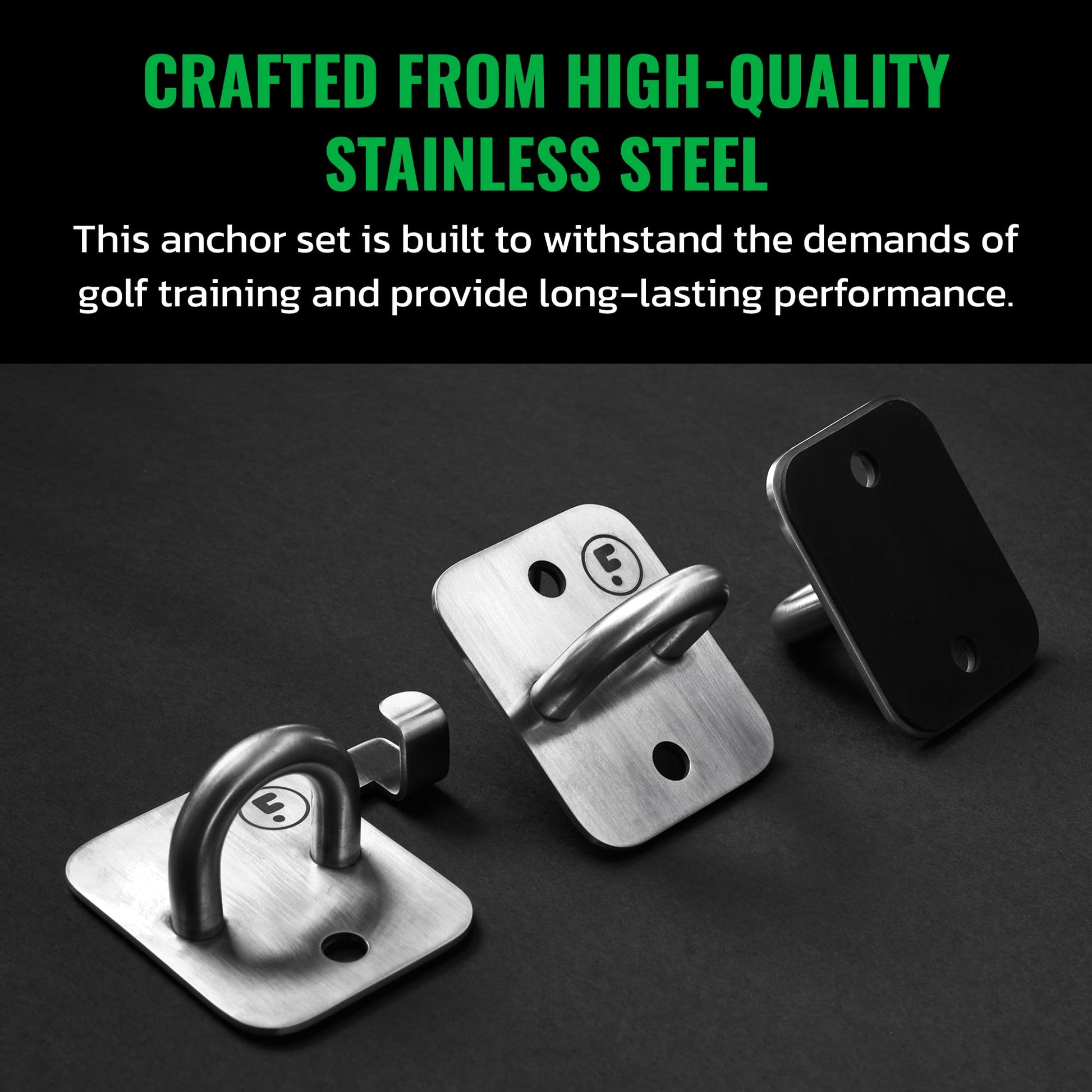 - DURABLE AND DEPENDABLE QUALITY: Crafted from high-quality stainless steel, this anchor set is built to withstand the demands of golf training and provide long-lasting performance. Created by golf enthusiasts for golf enthusiasts, this wall anchor set focuses on enhancing your golf-specific strength and flexibility.