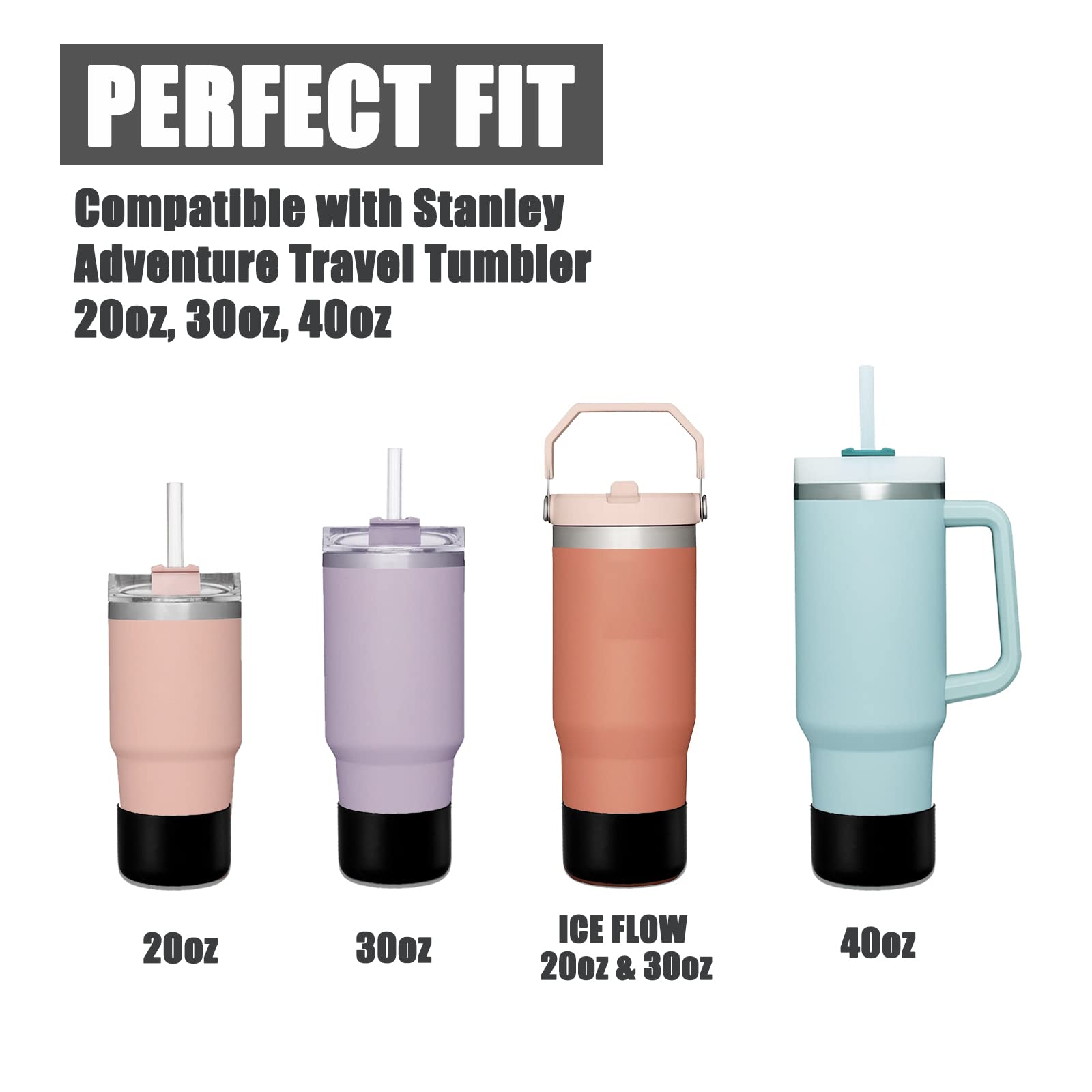 - Perfect Fit: These silicone protective boots are compatible with Stanley Adventure Quencher 20 oz, 30 oz, 40 oz and compatible with IceFlow 20 oz 30 oz tumblers. It can fit other tumblers with a base diameter of 2.75 inches to 3 inches. It’s also compatible with Hydro flask 12oz to 24oz bottles, compatible with Iron flask 12oz to 24oz bottles, compatible with Simple modern 12oz to 24oz bottles.