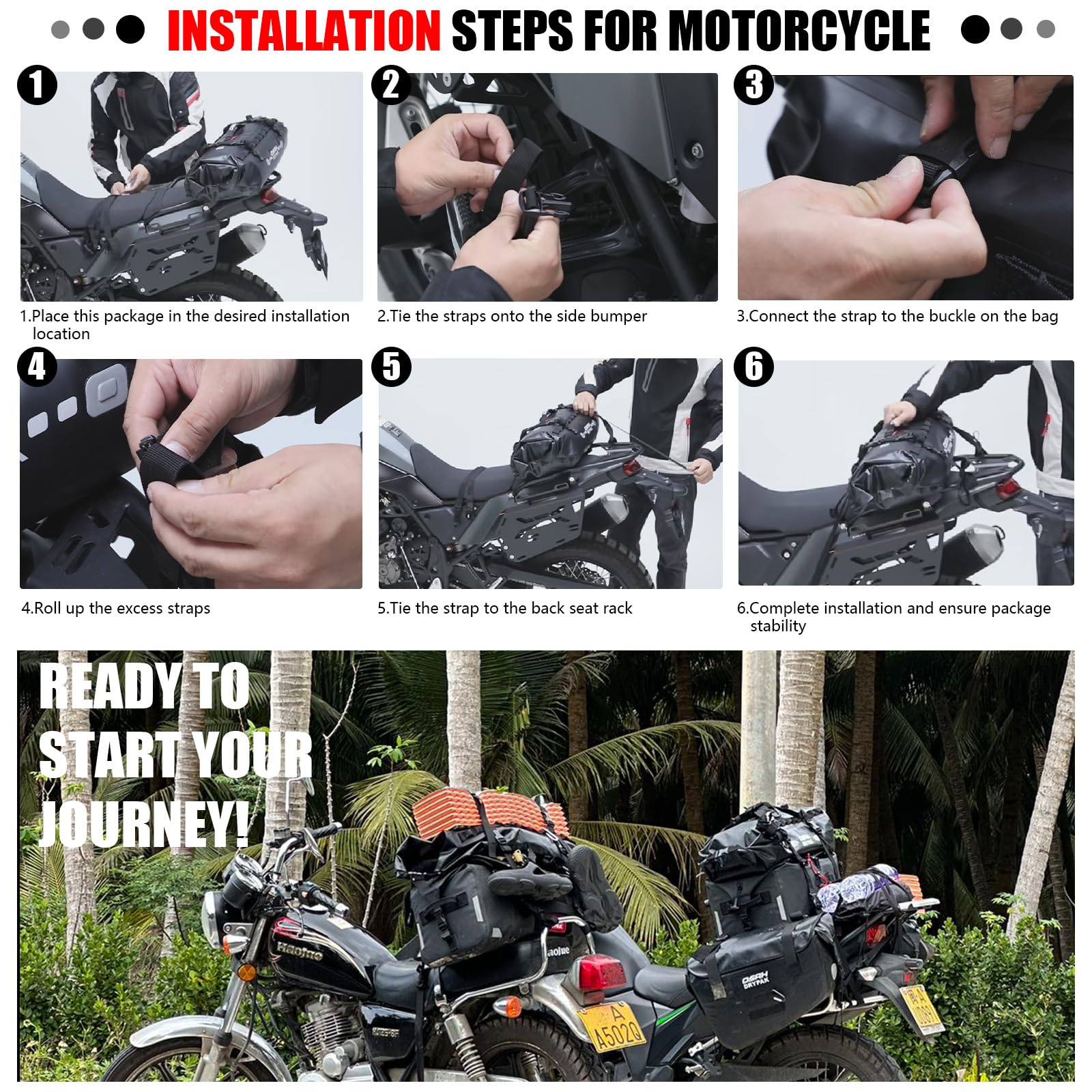 - MULTI FUNCTIONAL USE: This multifunctional motorcycle bag not only serves as a saddle bag for riding, but is also suitable for various scenarios, such as motorcycle camping, travel, and waterproof storage;Different capacities meet your various travel needs;It can accompany you in various scenarios, including motorcycles, scooters, bicycles, camping, commuting, and road trips