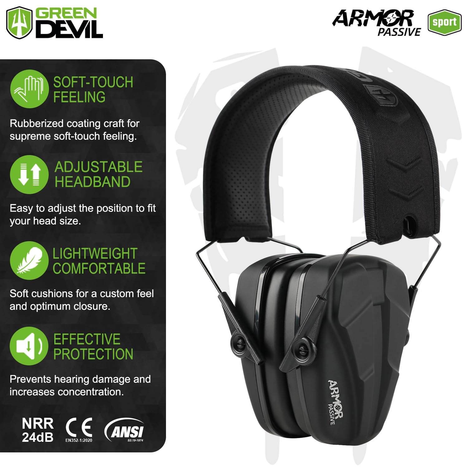 - 【Outstanding Passive Shooting Ear Protection】:GREEN DEVIL passive shooting ear protection defenders built with professional noise dampening foam,tightly-sealed material and a premium quality shell.Shooting hearing protection ear muffs provide a high NRR-up to 24dB, SNR-up to 28dB,better noise reduction effectively filter sound and maximum protect your hearing safe from hazardous sound levels!