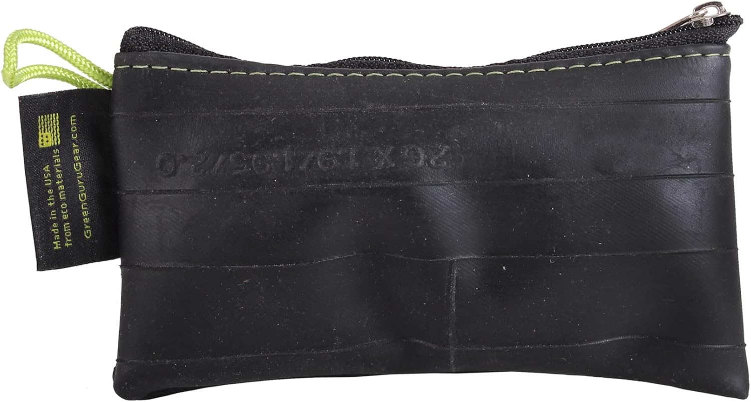 Designed to be simple and stylish storage solutions, these pouches are made from upcycled bicycle inner tubes so your stuff stays protected and dry. The large pouch protects your sunglasses, pens, or small hand tools.