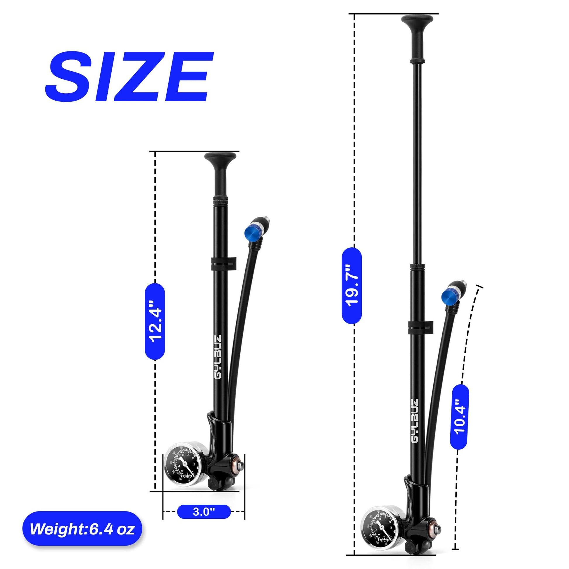 - Reaching up to 400 PSI, Gylbuz high pressure shock pump effortlessly inflates front forks and rear suspensions, ideal for all mountain bike types including downhill and full-suspension.