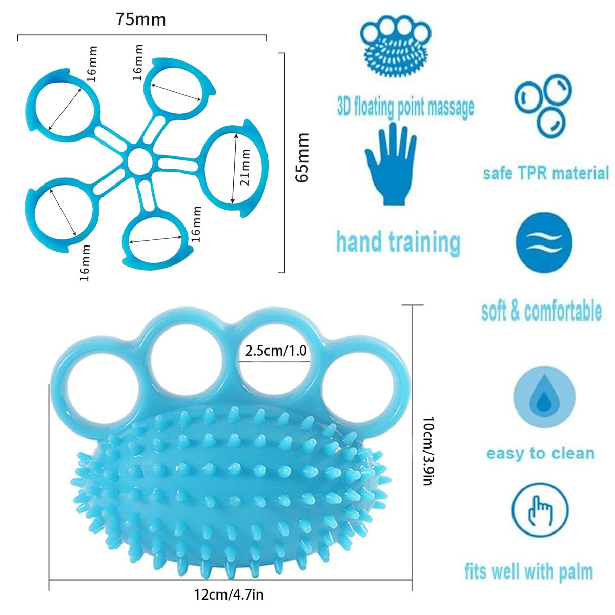 Hand Exerciser Ball and Finger Stretcher, Hand Grip Strengthener Trainer, Squeeze Balls, Wrist Pain Relief (Blue)