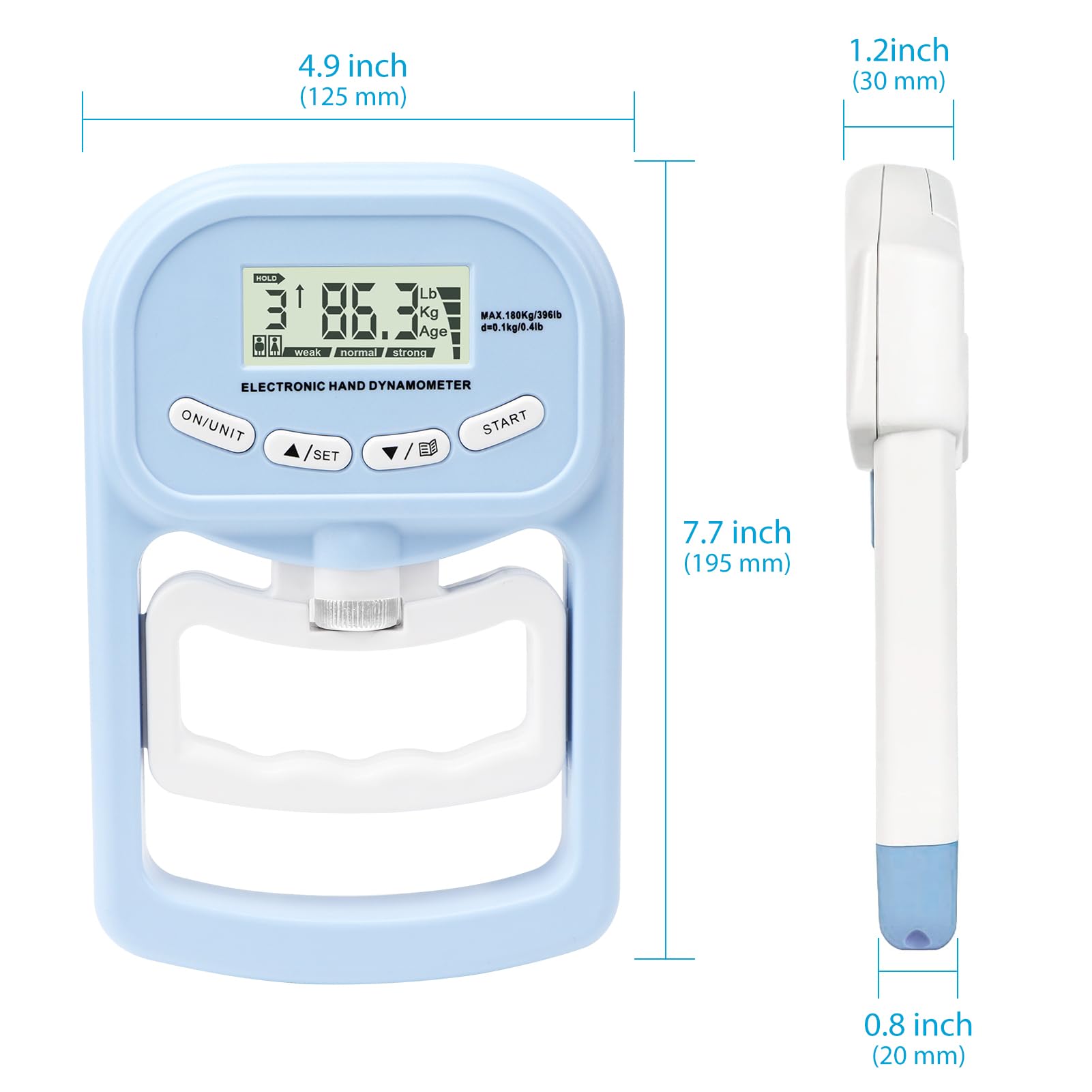 - Accurate Testing Measurement: This Digital grip strength tester is equipped with a high accurate strain sensors for accurate measurements up to 396 lbs/180kg of force.Easy to operate for convenient use.
