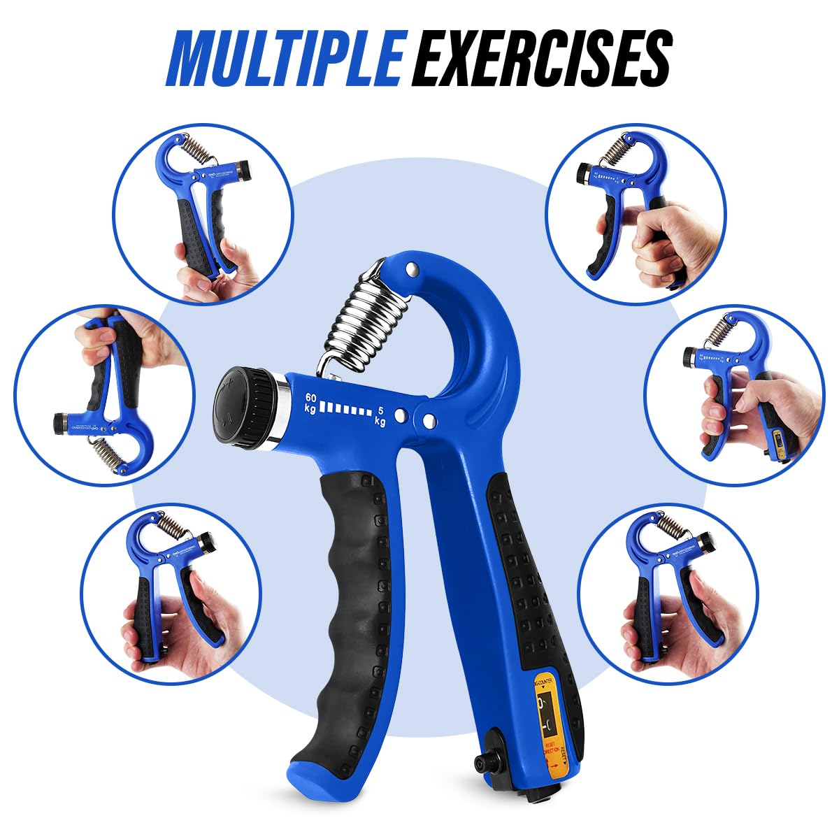 Hand Grip Strength Trainer with Adjustable Resistance 10-130lbs (4.5-59kg), Forearm Hand Grip Strength Exerciser for Muscle Building, Injury Recovery, and Therapy Stress Relief, Blue
