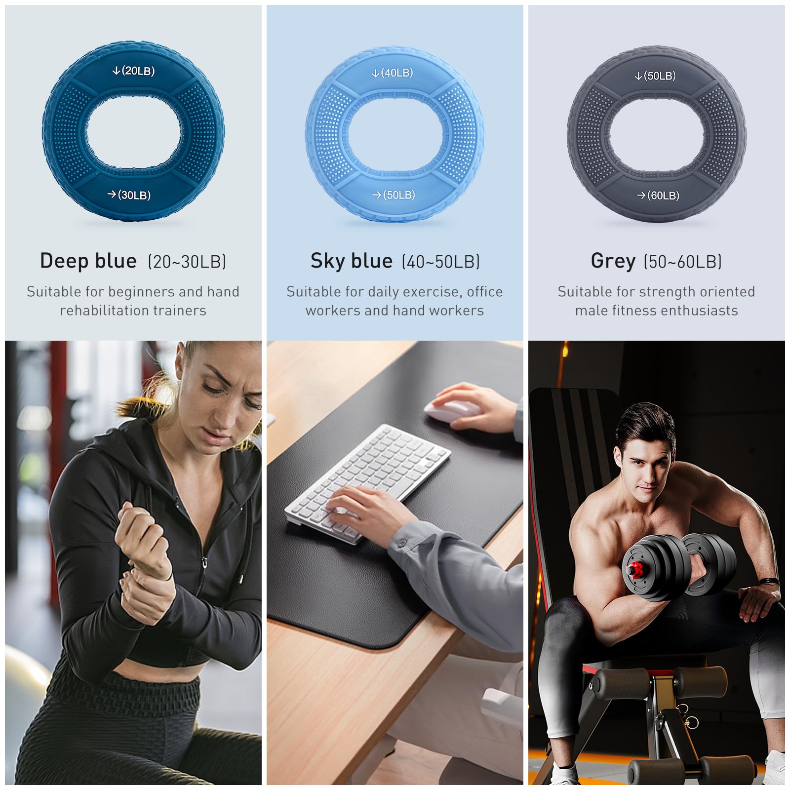 Hand Grip Strengthener, Grip Strength Trainer, Fingers Exerciser - Silicone Rings for Muscle Training Sports Rock Climbing Finger Rehabilitation Training,Hand & Wrist Muscles Trainer Stress Relief,5 Resistance Levels(3 PCS)