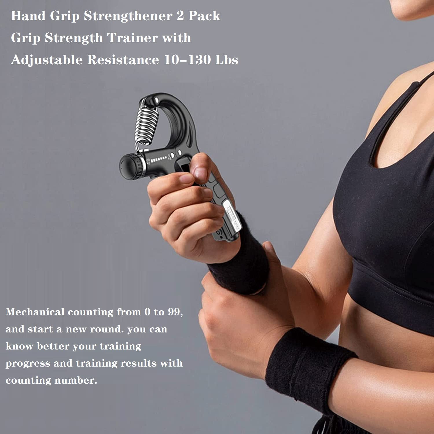 Hand Strengthener Grip 2 Pack, Hand Exercisers for Strength with Adjustable Resistance 10-130 Lbs,Hand Grip,Grip Strength Trainer for Muscle Building and Injury Recover(Black)