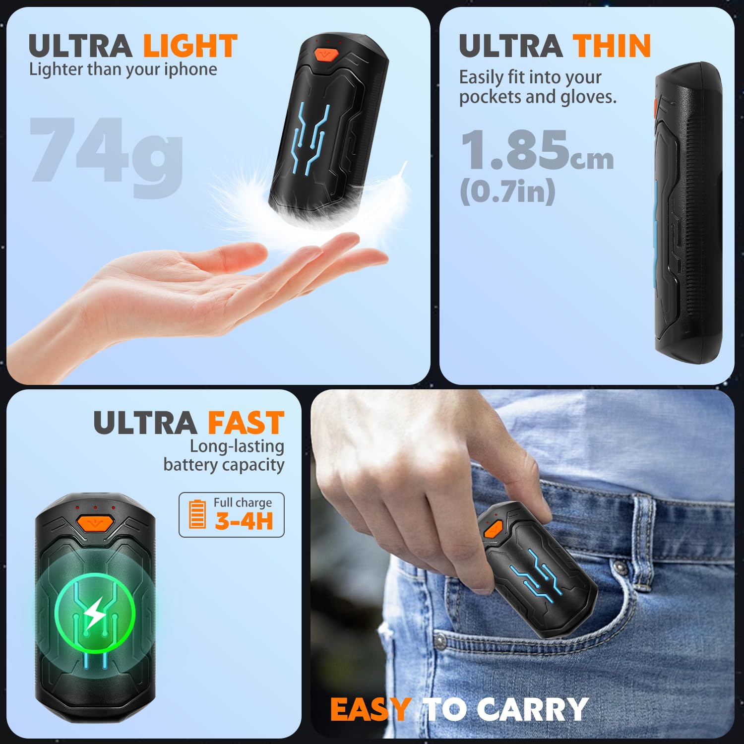 - Small Size&Easy Carry: With a thickness of 0.75 inch and 2.6 ounce in weight. The rechargeable hand warmers can easily fit into your pockets or gloves. Suitable for outdoors in winter, walking the dog, traveling, camping, and hunting.
