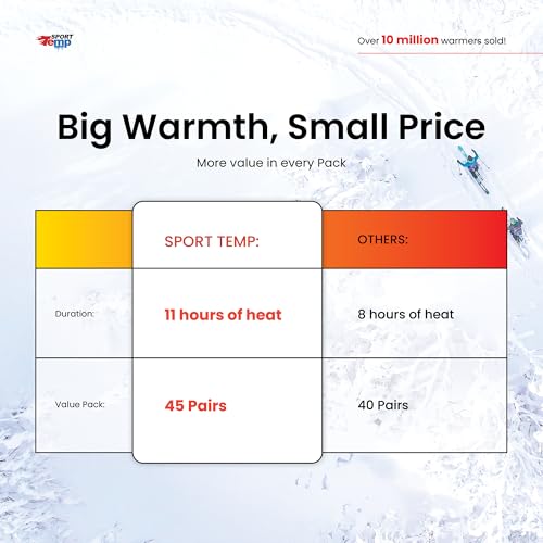 Hand Warmers - Up to 11 Hours of Heat, Super Long Lasting - Easy, All Natural - Air Activated, for Body, Hands & Toes - Odorless Hot Hand Warmer - Sport Temp