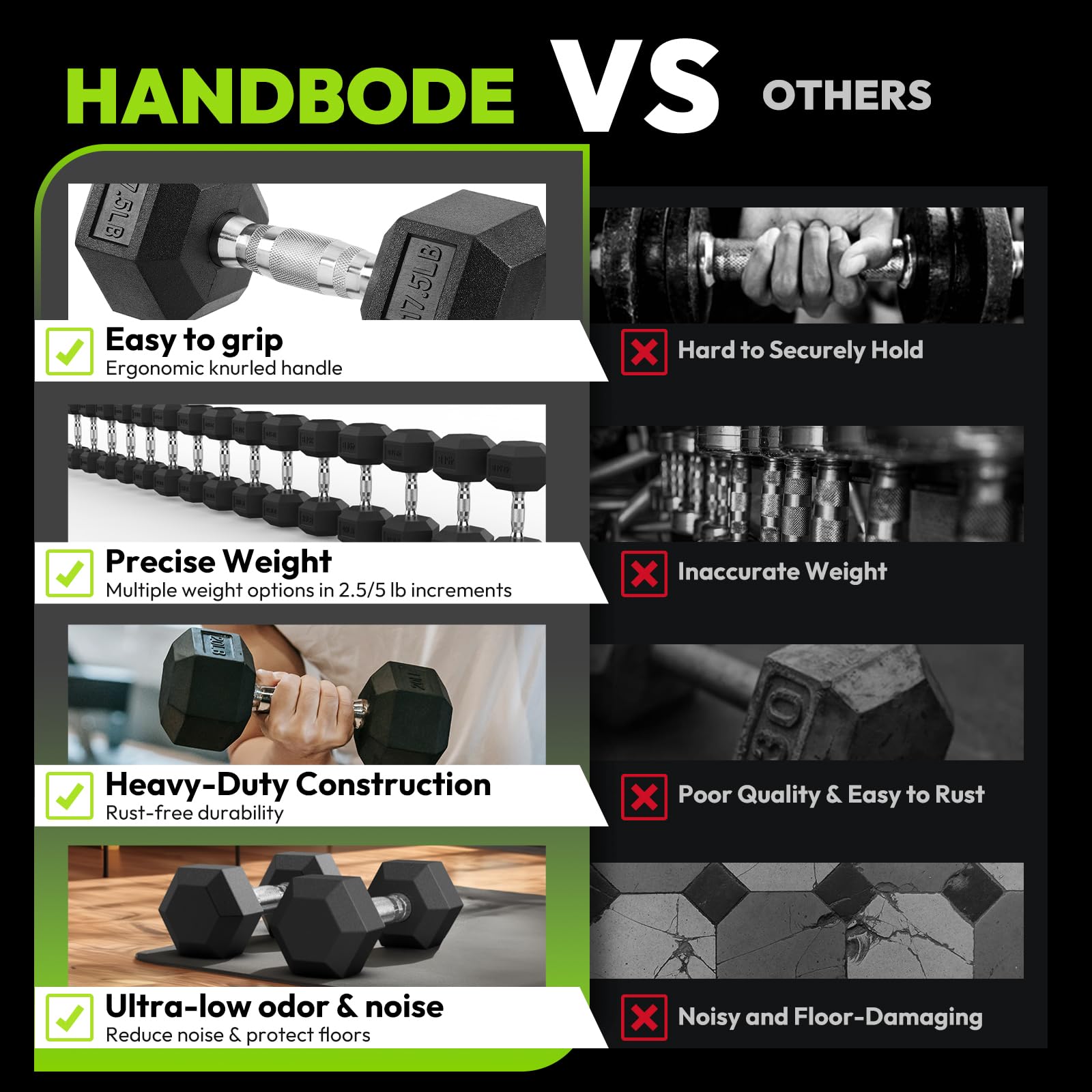 HANDBODE Hex Dumbbell Rubber Encased Exercise & Fitness Dumbbells, Hand Weight For Strength Training / 27.5LB