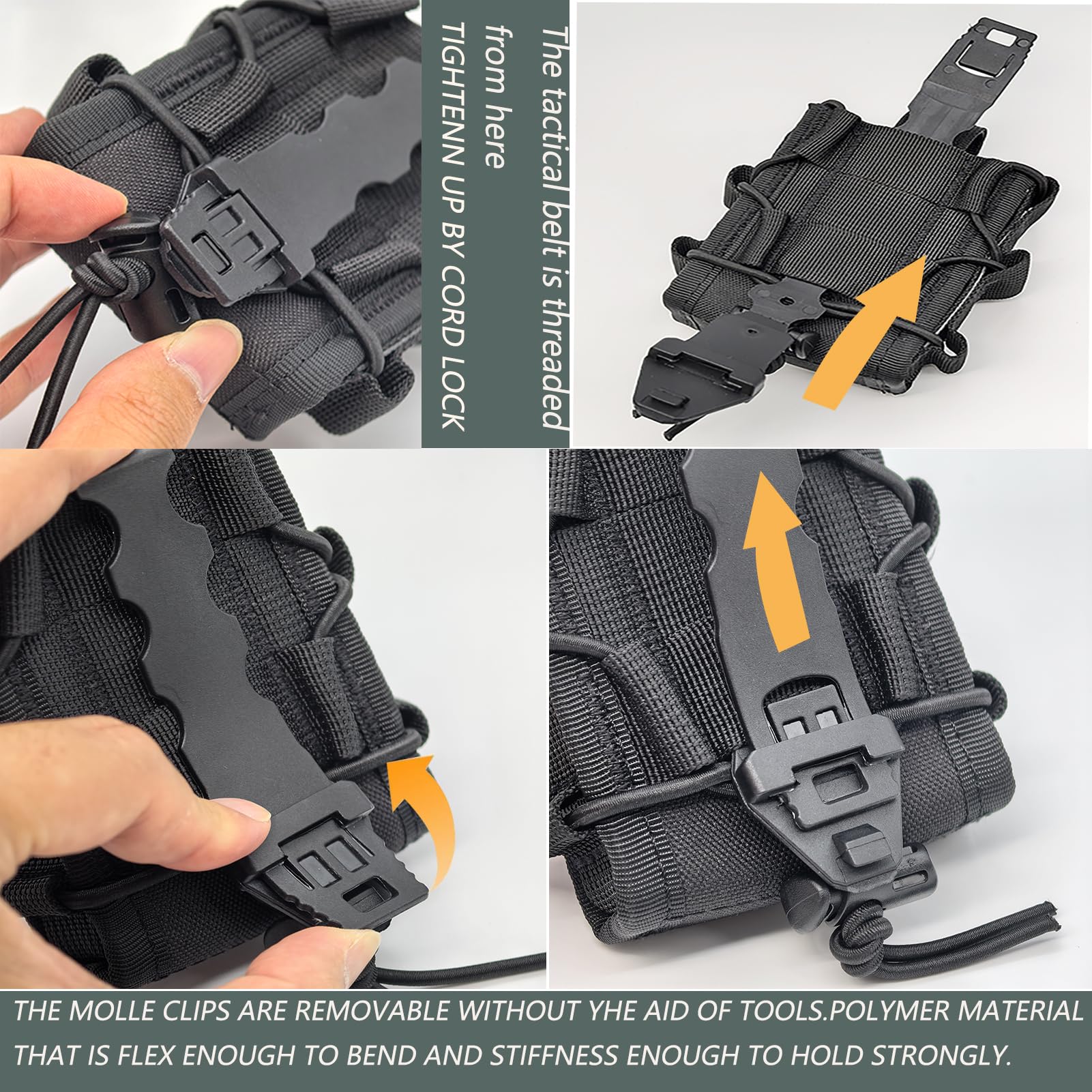 - RAPID RESPONSE: Designed with a retention strap, Molle Handcuff Pouch can holds handcuffs firmly. Removing the adjustable interior strap, you can use the Handcuff Pouch an open-top pouch for quick access.