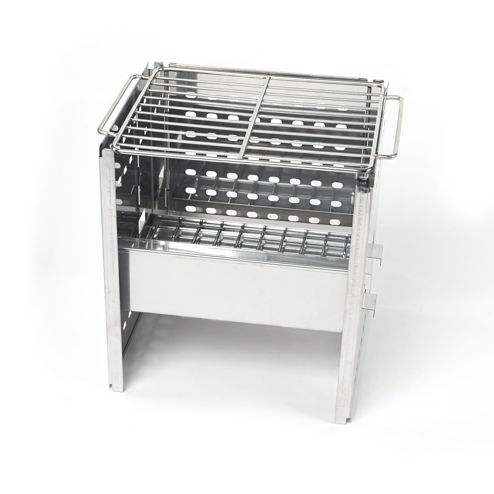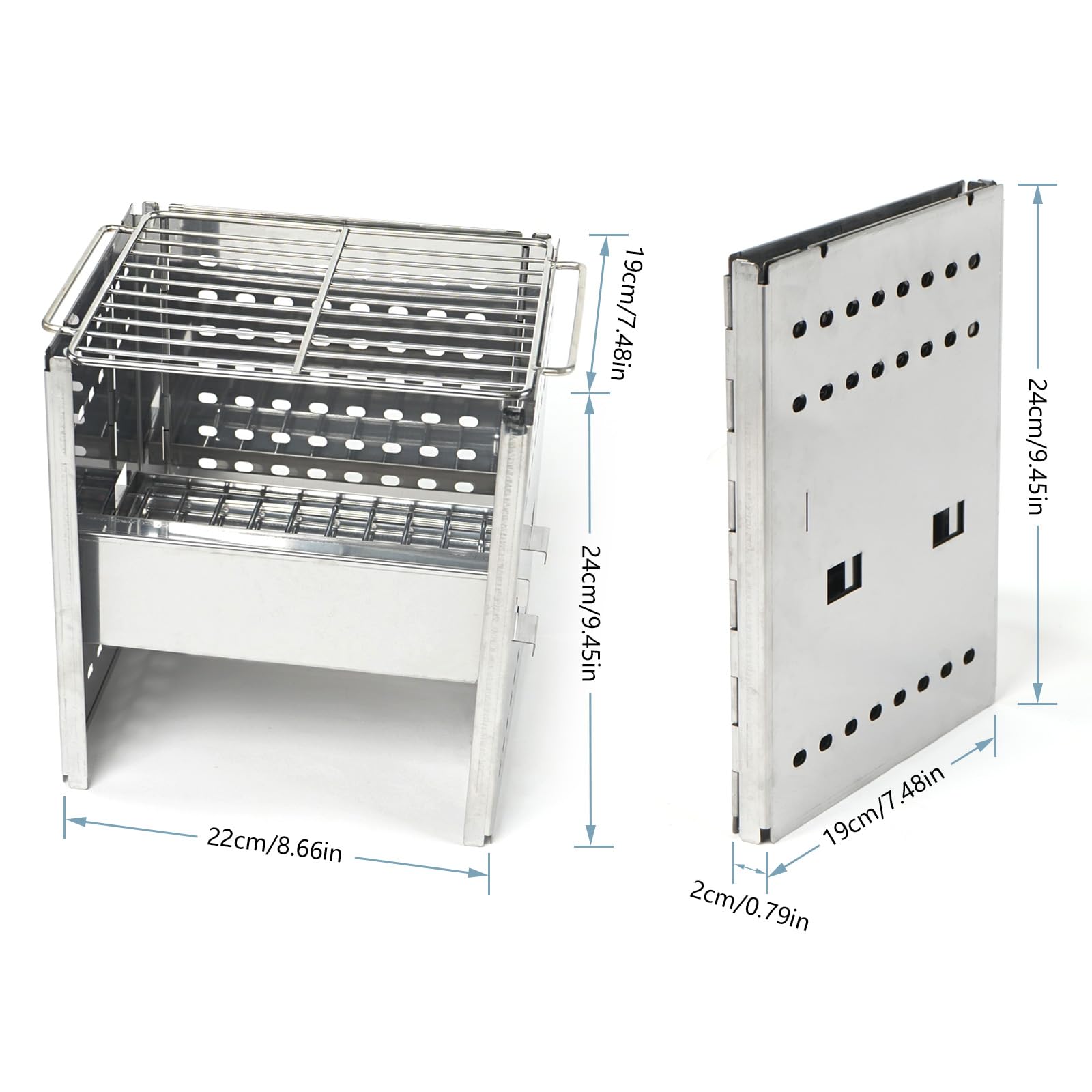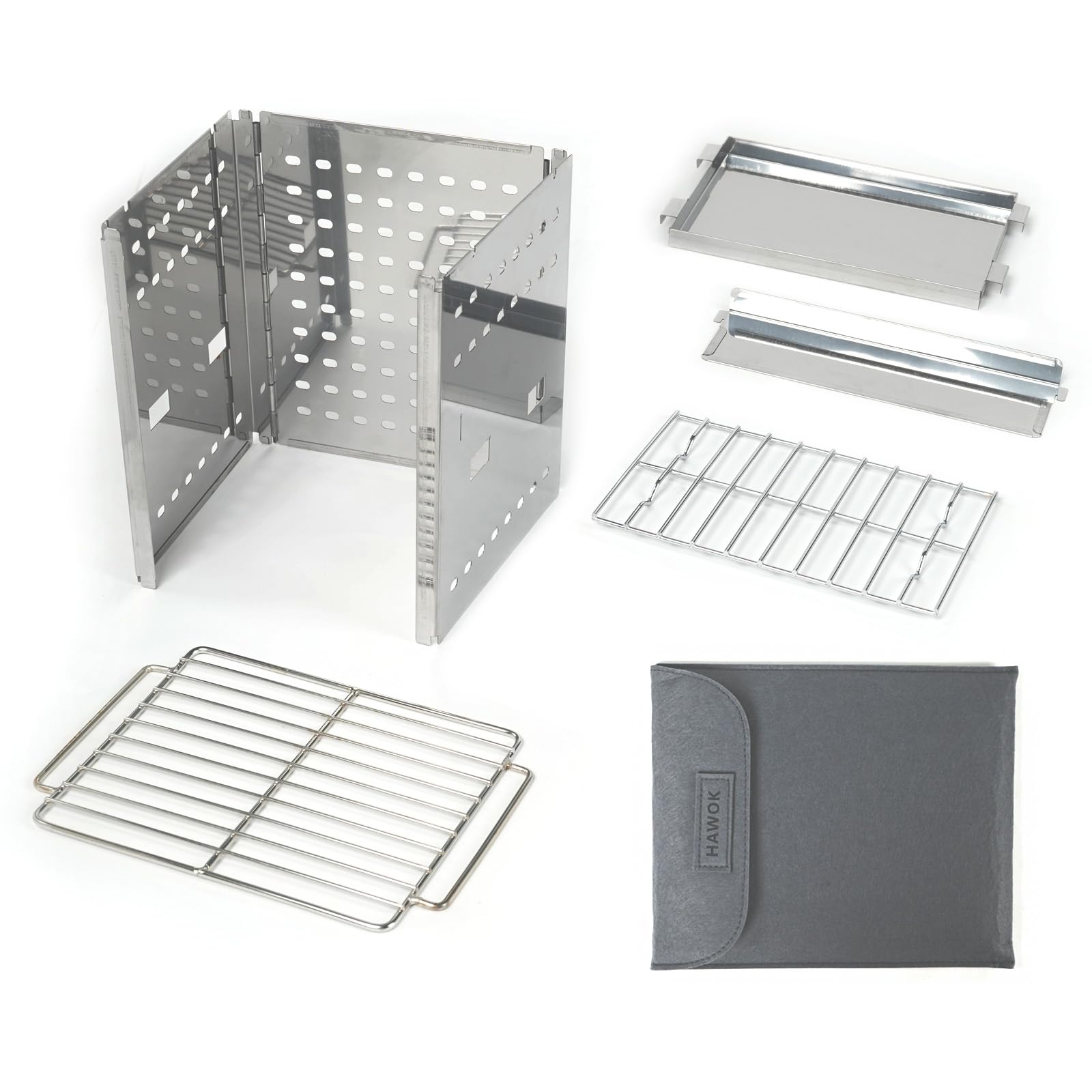 HAWOK Stainless Steel Folding Outdoor Stove with Carrying Bag and Stainless Steel Grill, 8.7"L x 7.5"W x 9.5"H, Portable Wood Burning Grill