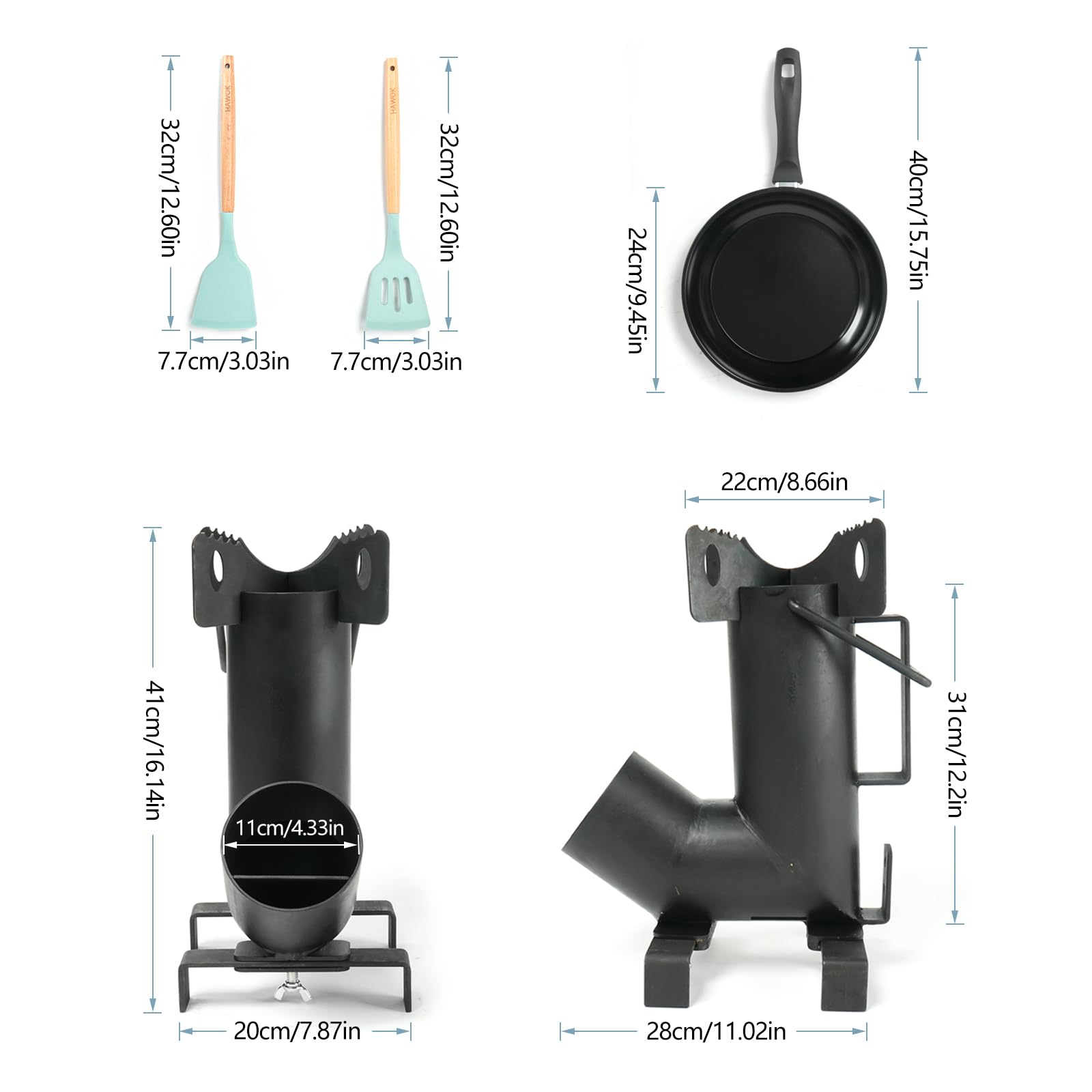 HAWOK Wood Burning Rocket Stove, Camping Rocket Stove for Outdoor Cooking with Skillet, Camp Cooking and Emergency Situations
