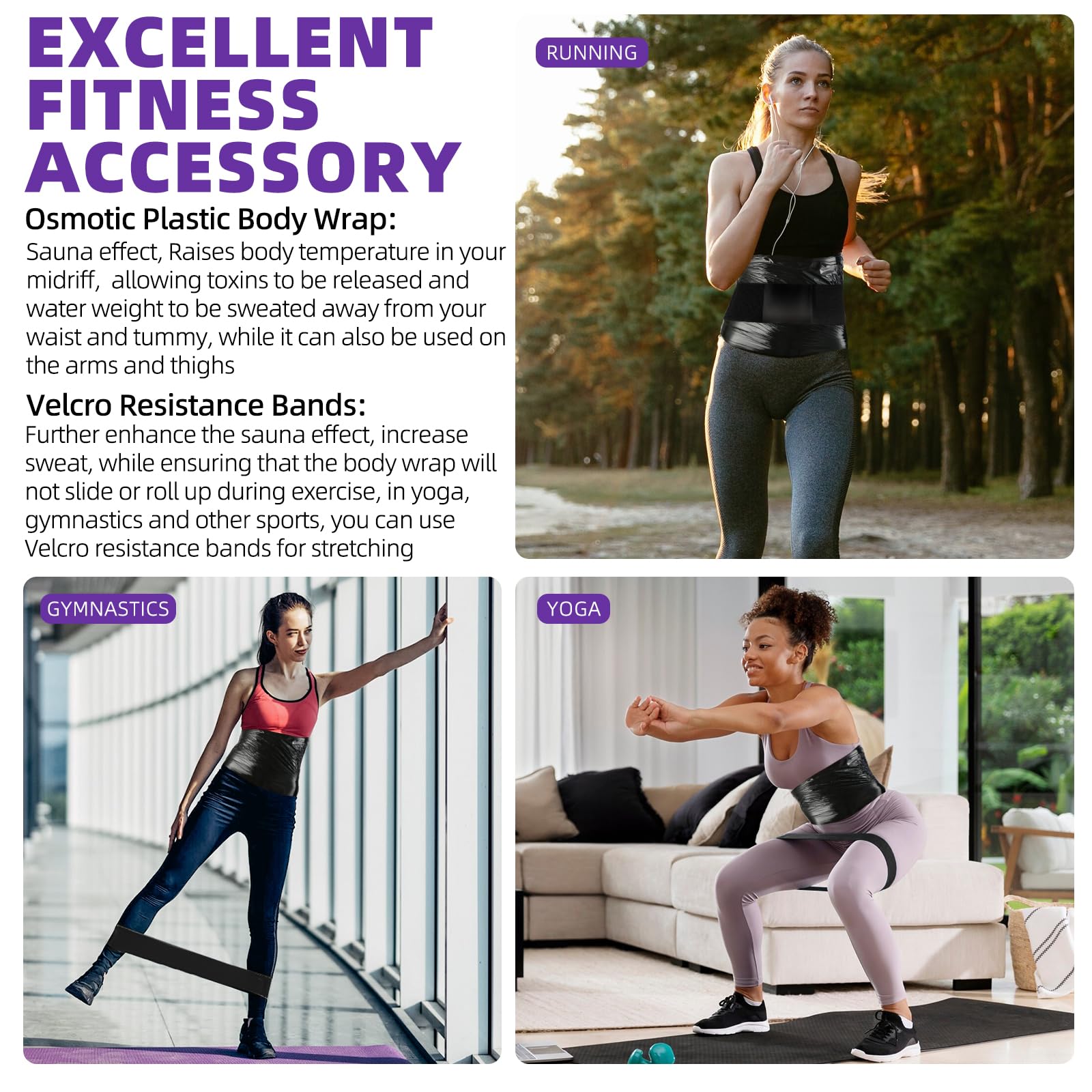 - 【Body Wrap Companion】 - The product is paired with Velcro resistance bands, which can further enhance the sauna effect. The soft resistance band will not slide or roll up during exercise, and can also be used to strengthen the muscles of the legs and hips, which can help you solve the body problem and create a beautiful figure