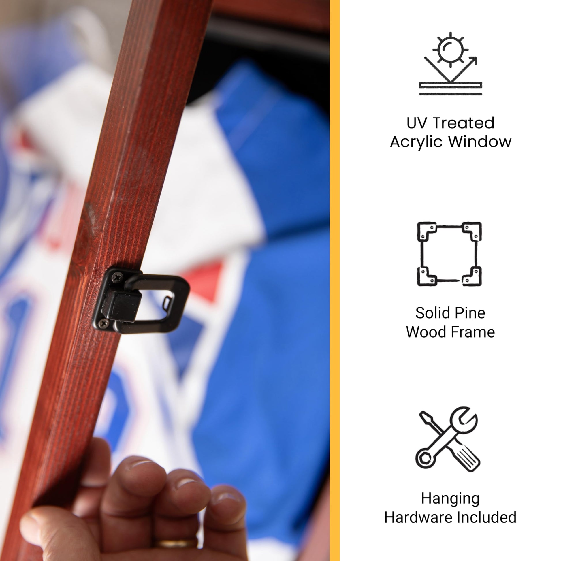 - Clear Acrylic Window: The jersey frame is designed with a clear acrylic window that provides a clear view of your collectibles. Its quality is comparable to a glass display case, offering a better view of your sports jersey or any other display items.
