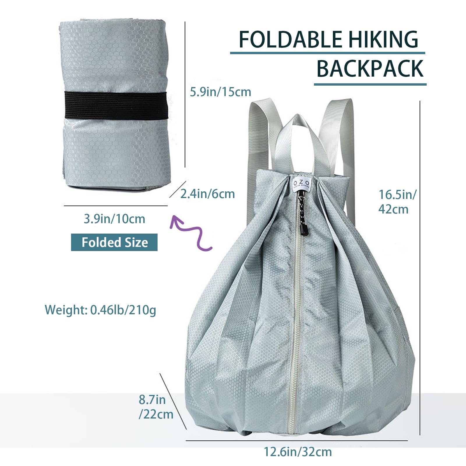 - ►Portable Folding:The foldable backpack measures 16.5 x 12.6 x 8.7 inches and folds to 5.9 x 3.9 x 2.4 inches, when not in use the packable backpack is stowed away as a tiny roll, small in stature and light in weight, The foldable daypack backpack can be easily packed into outerwear pockets, suitcases or handbags.