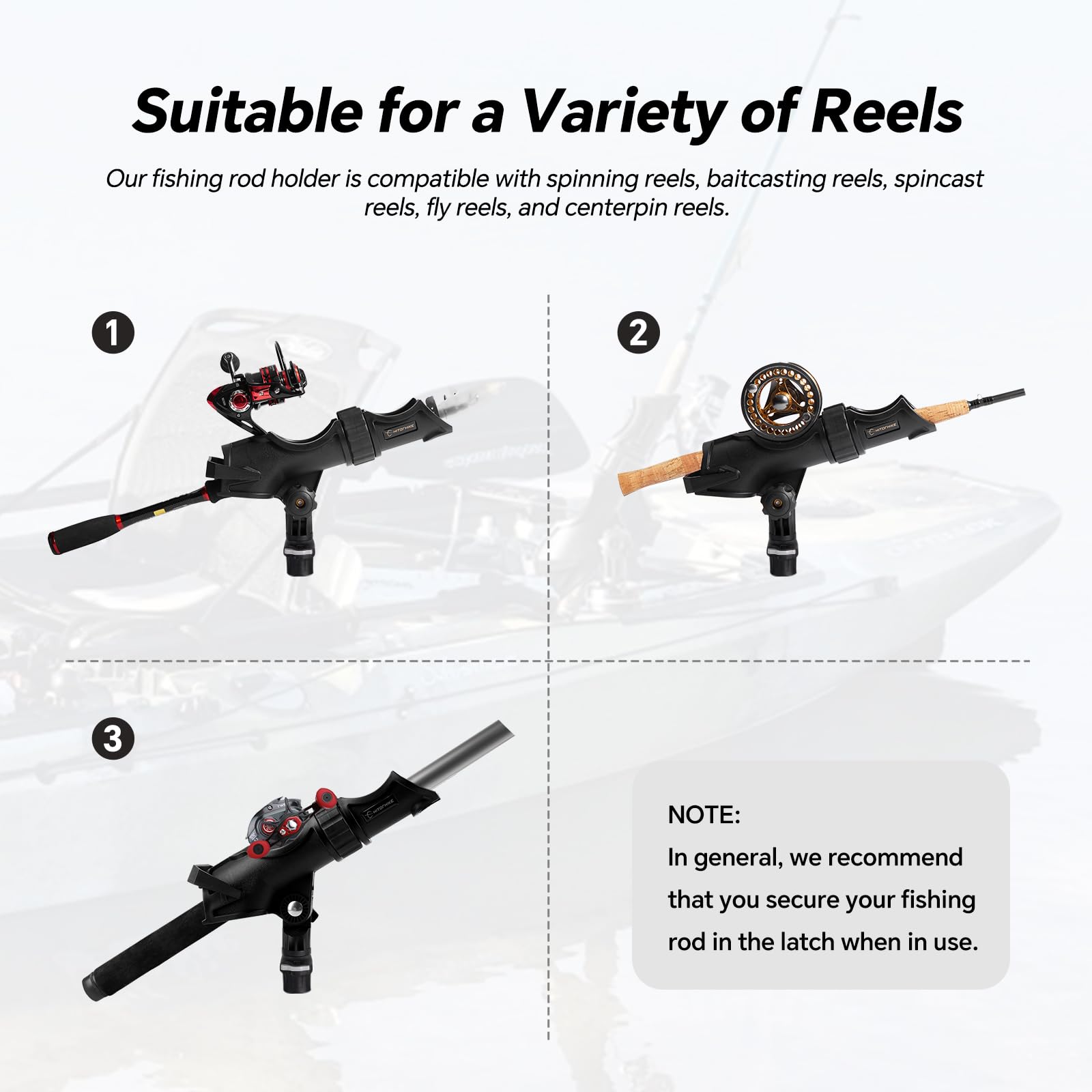 - UNIVERSAL FIT: Compatible with a wide range of reels, including spinning reels, fly-fishing reels, boat-fishing reels, and baitcasting reels. It supports 360° horizontal adjustment and over 90° vertical adjustment, meeting various usage requirements.