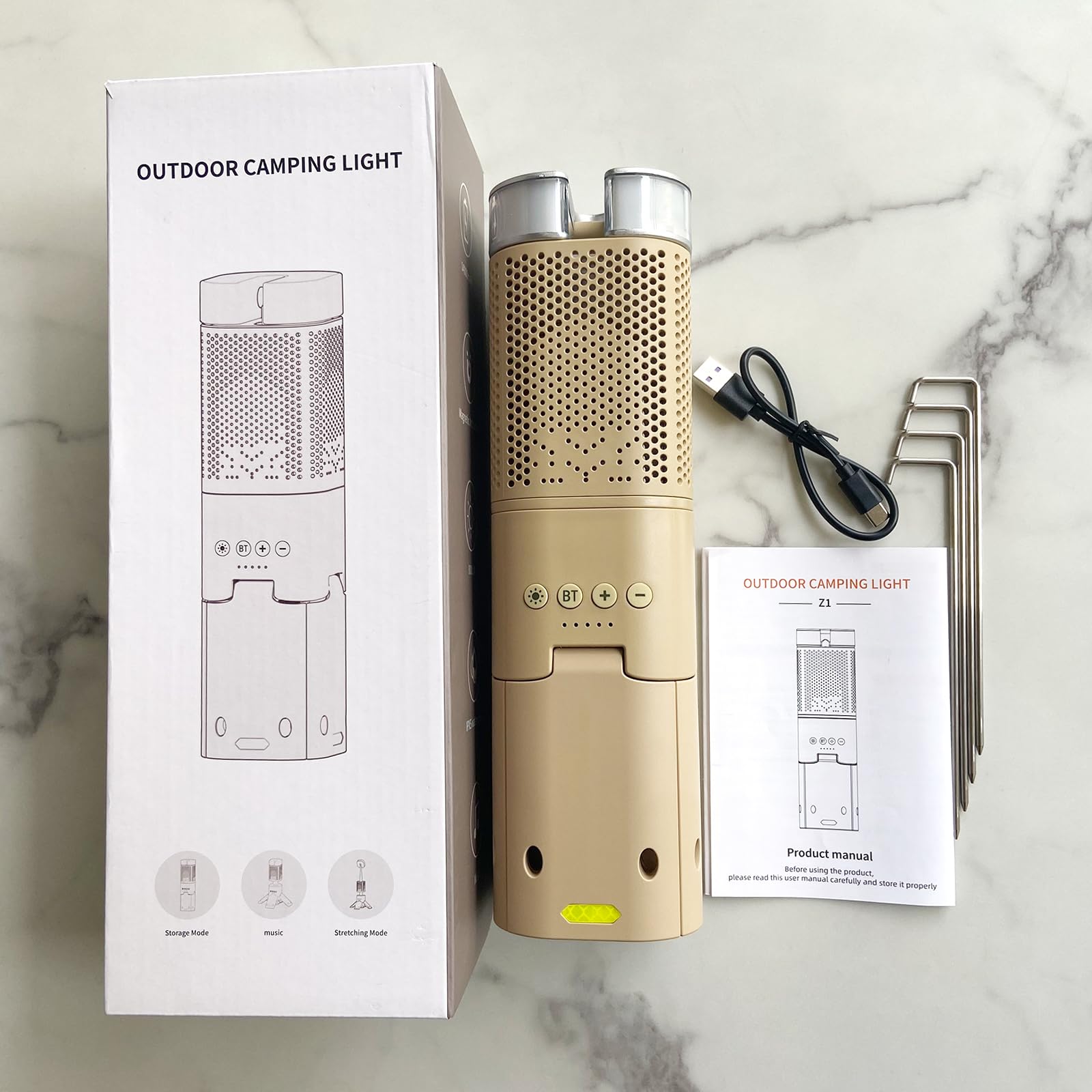 Hiwevvy Camping Lantern, 14000mAh Rechargeable Telescopic Camping Lights Built-in Magnetic Stand with Speaker, Portable Waterproof Outdoor LED Flashlight for Emergency, Hiking, Camping, Fishing -Khaki