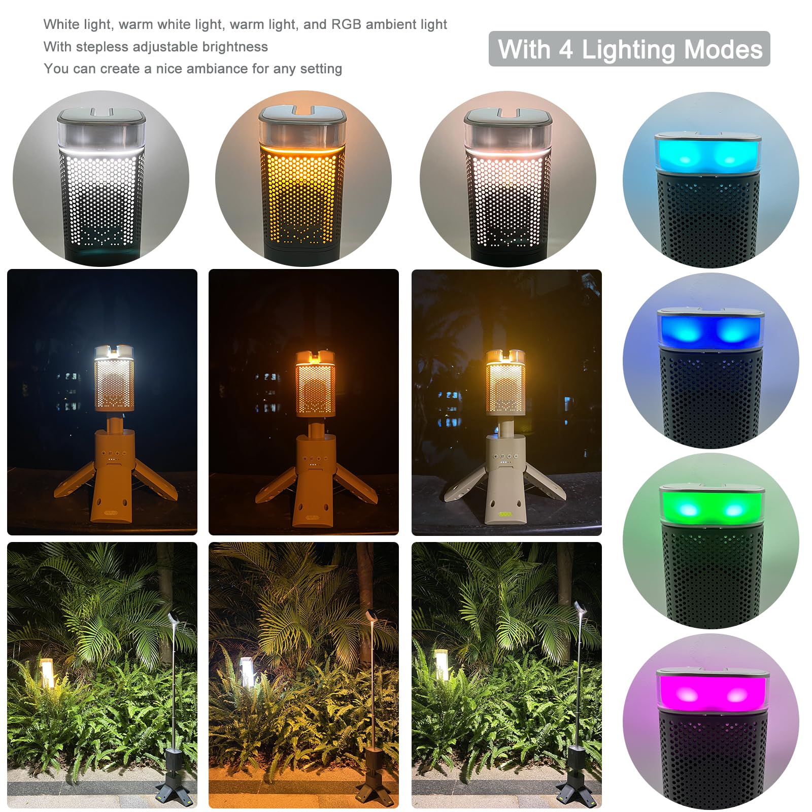 - 【Multiple Lighting Modes & Dimmable】With 4 lighting modes - white light, warm white light, warm light, and RGB ambient light - and stepless adjustable brightness, you can create a nice ambiance for any setting. Illuminate your campsite with an impressive 800 lumens of brightness, providing ample light for various outdoor activities and tasks.