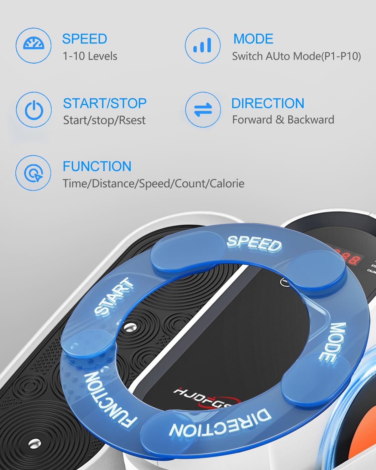 - 【AUTO & Manual Exercise Mode】Electric two motion modes: automatic mode (P1-P3) and manual mode (10 speed); Two control methods: by pressing the LED display button control; Wireless remote control without bending over;(Automatic program state to press the remote control, can not adjust the time, speed; You need to set it to manual mode to adjust it.)